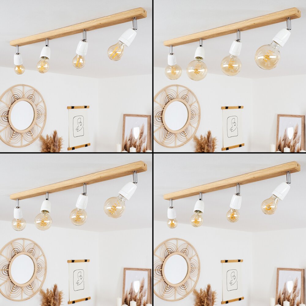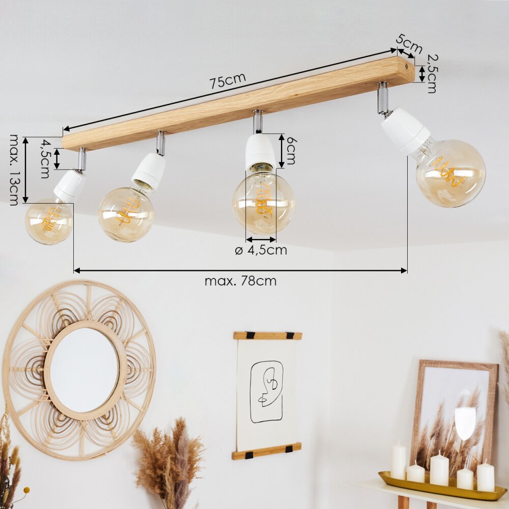 Tina Plafondlamp Chroom, Hout licht, Zwart, 4-lichts