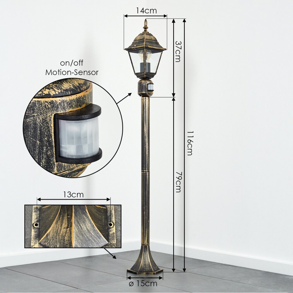Naofe Padverlichting Goud, Zwart, 1-licht, Bewegingsmelder