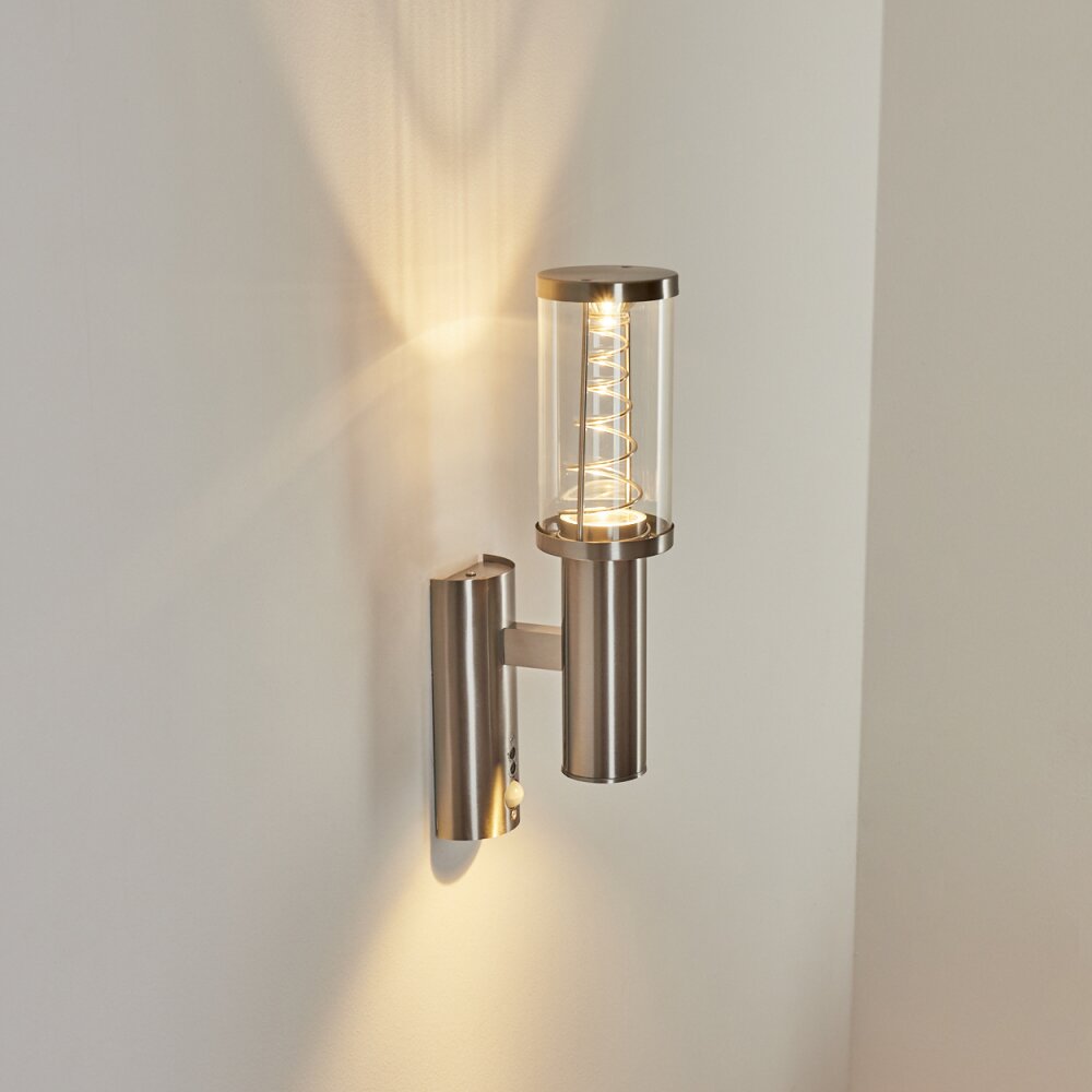 Bessiebelle Buiten muurverlichting roestvrij staal, 2-lichts, Bewegingsmelder