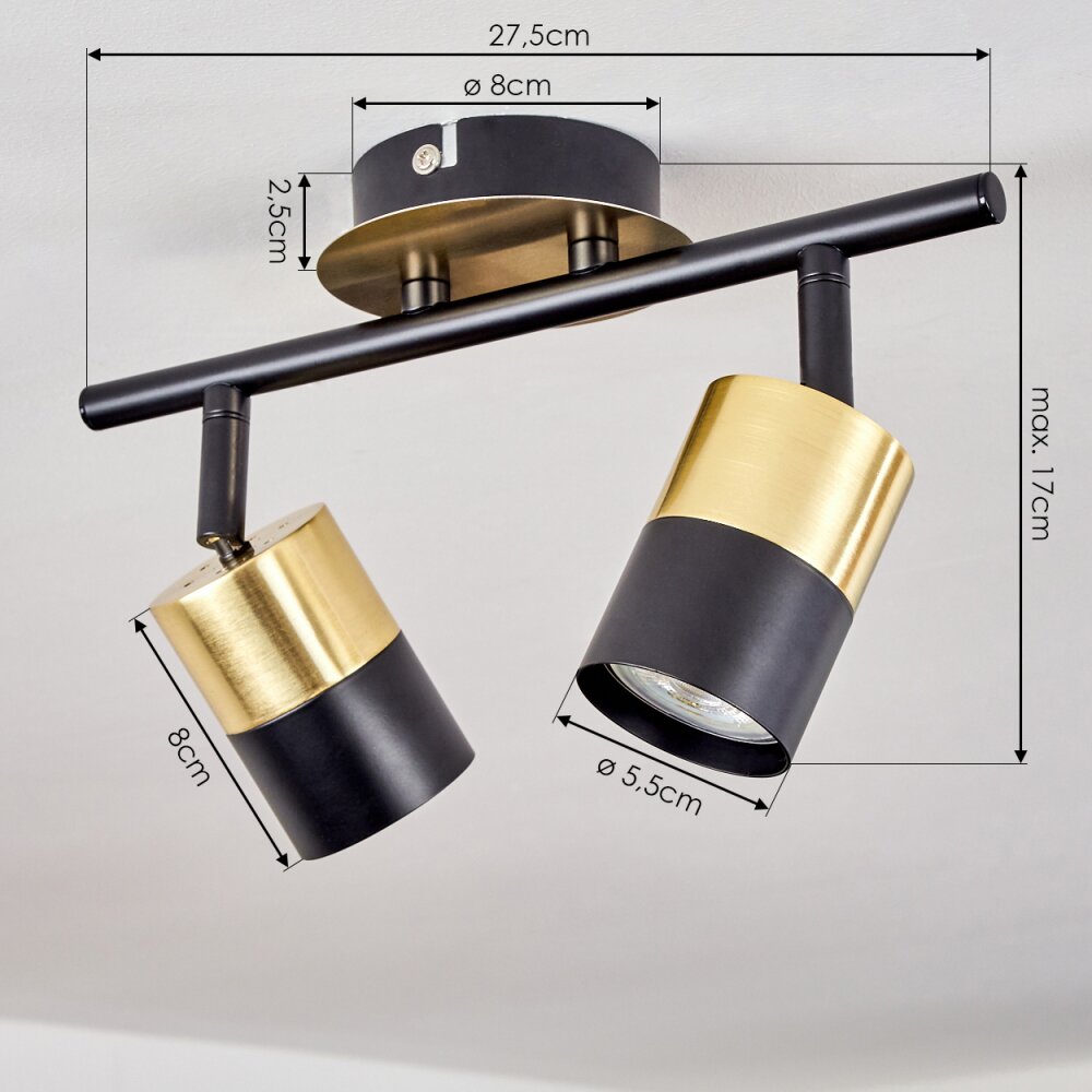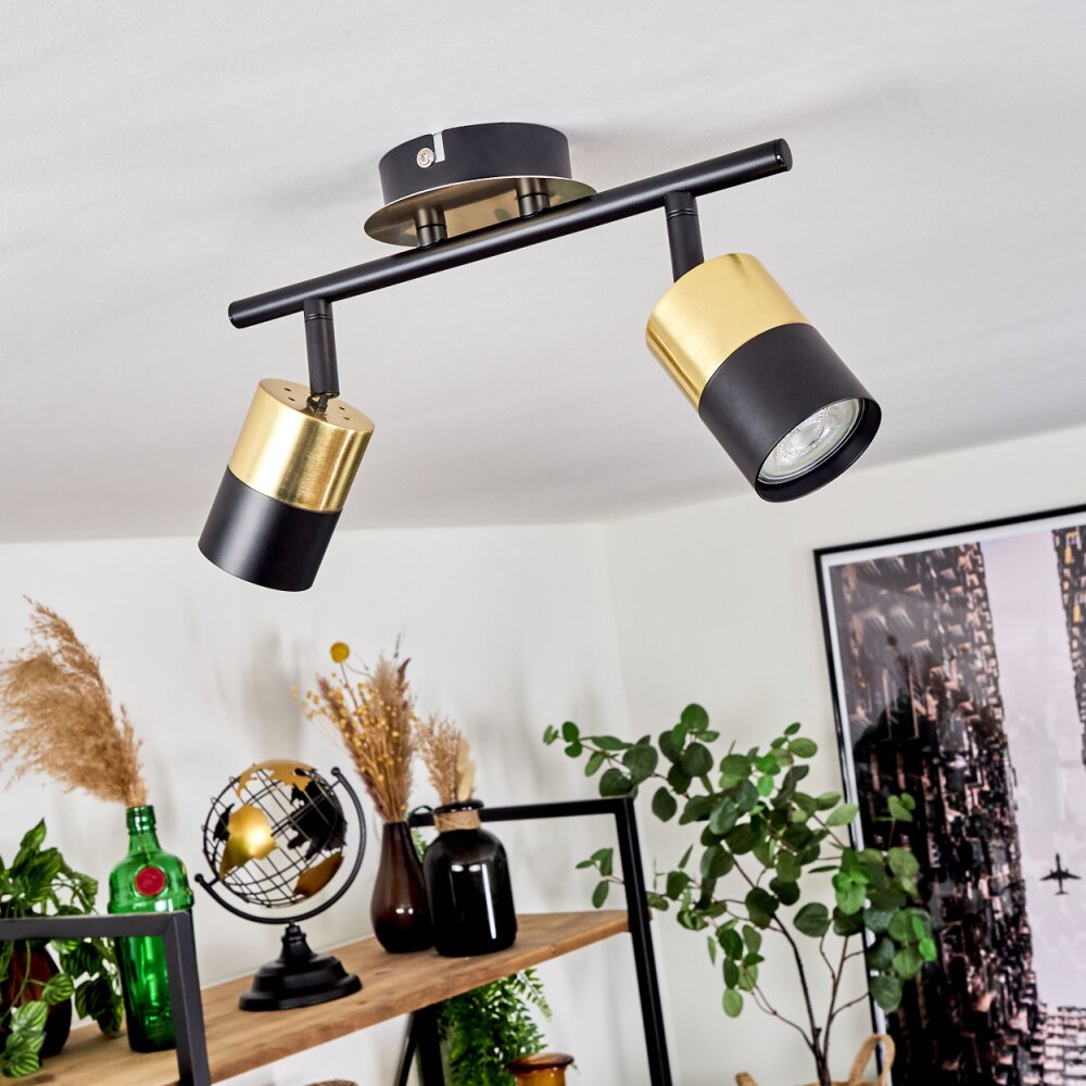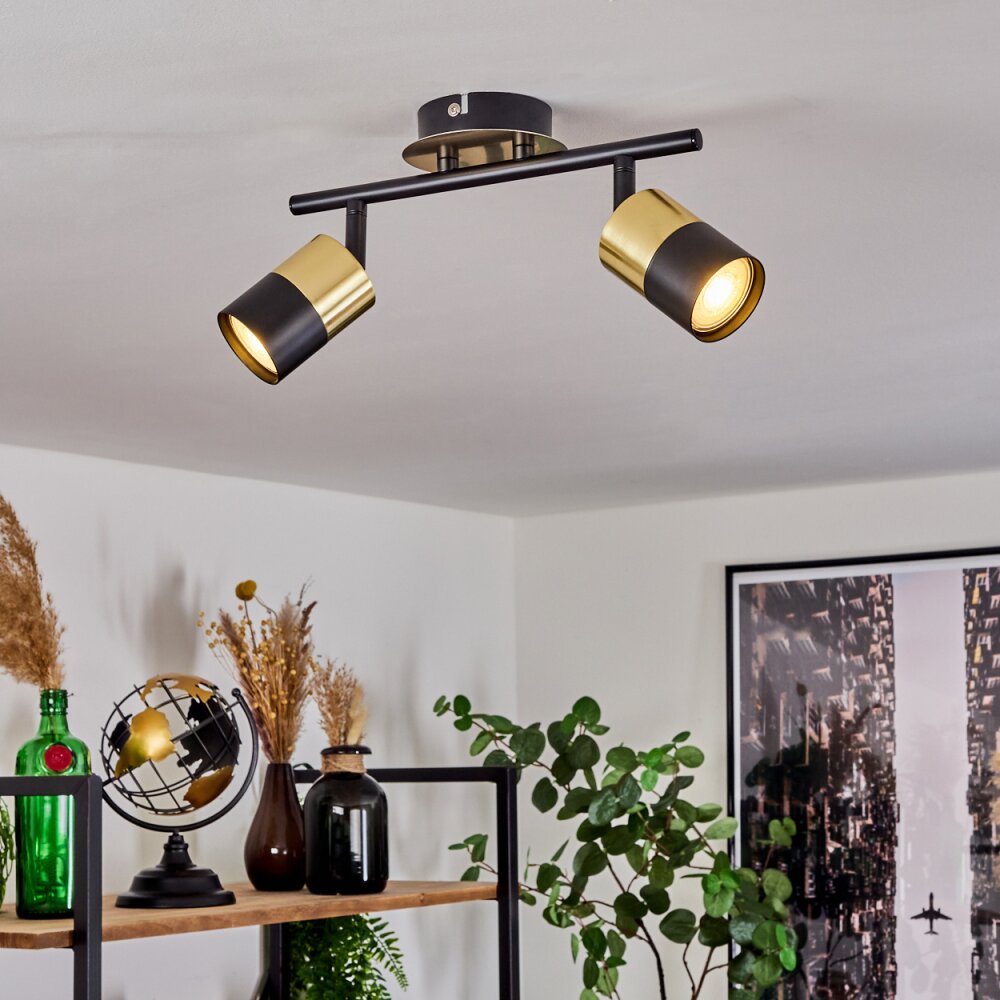 Neftenbach Plafondlamp Messing, Zwart, 2-lichts