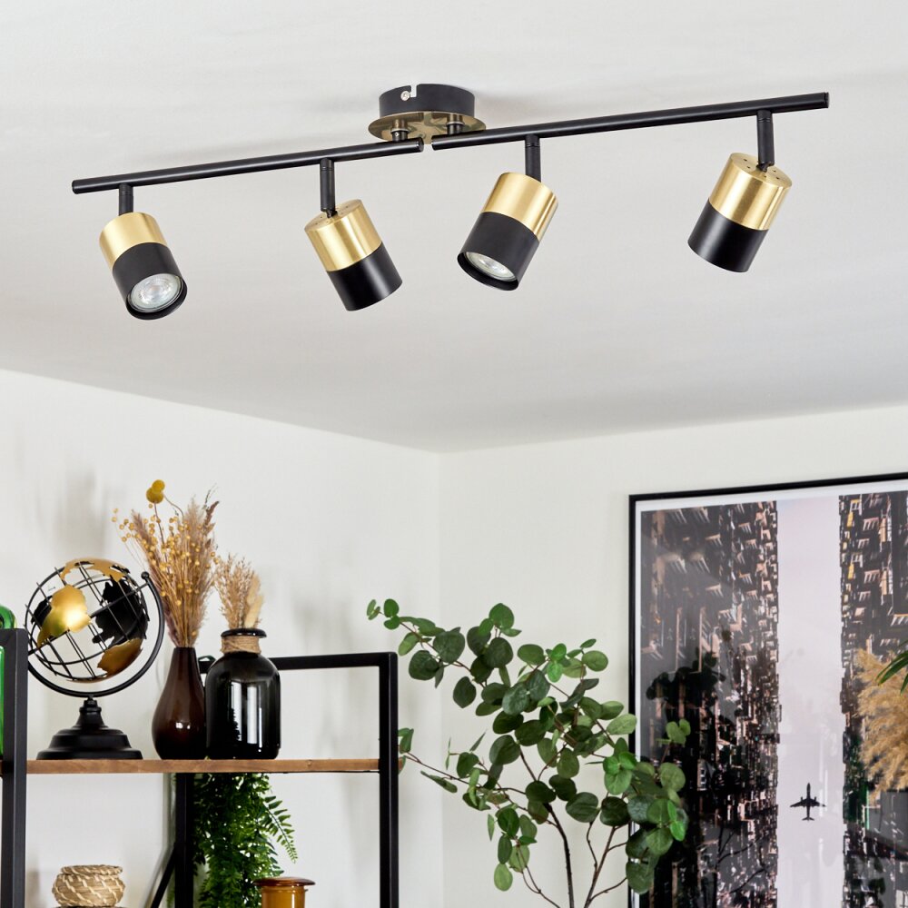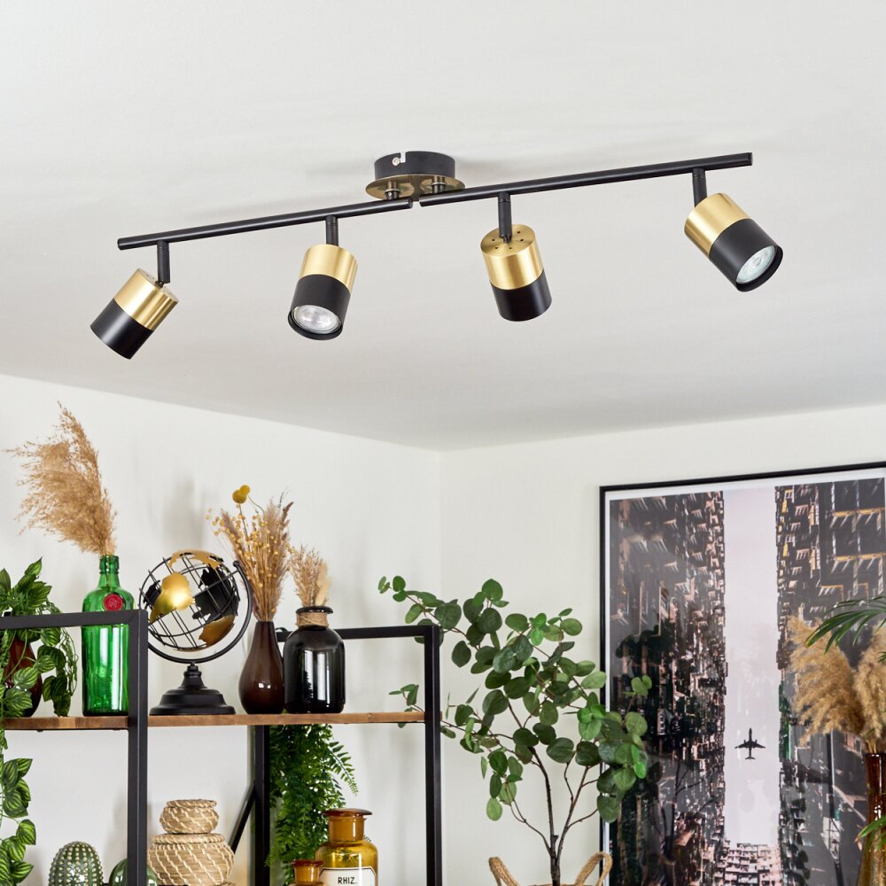 Neftenbach Plafondlamp Messing, Zwart, 4-lichts
