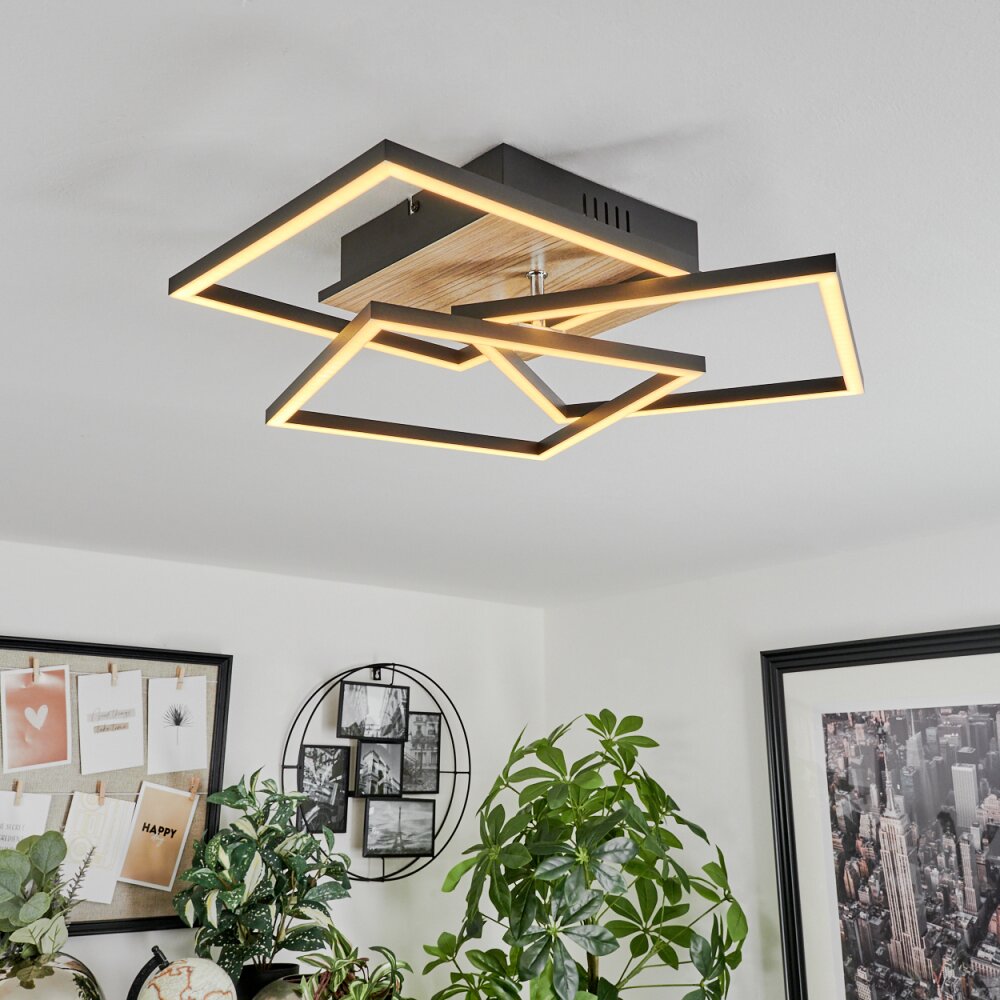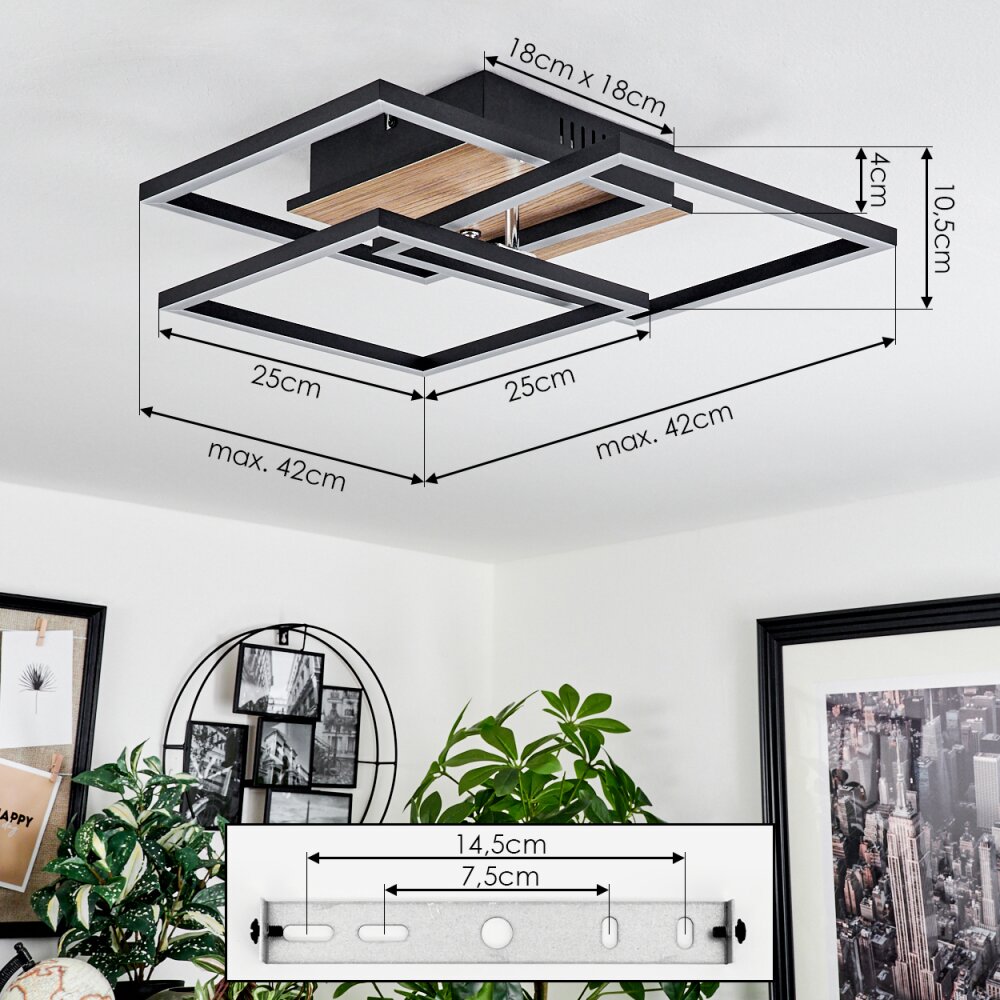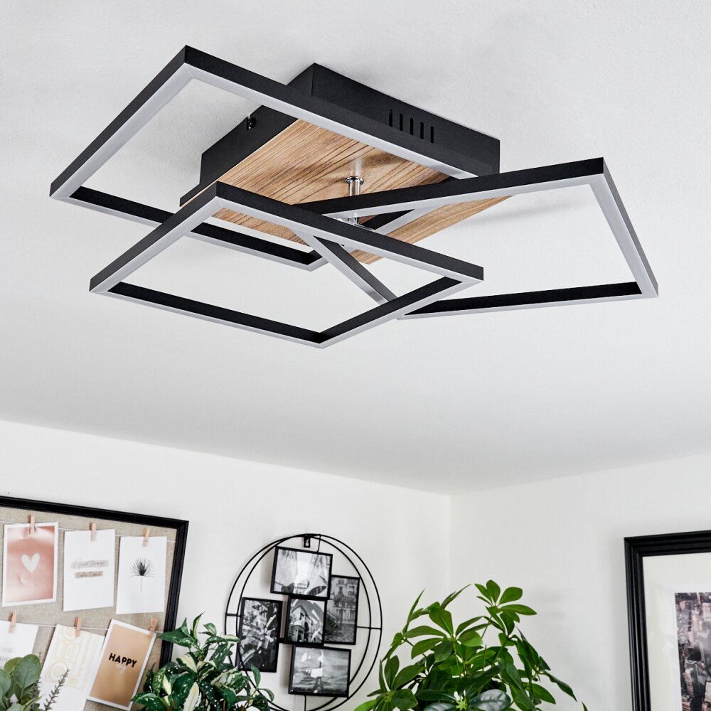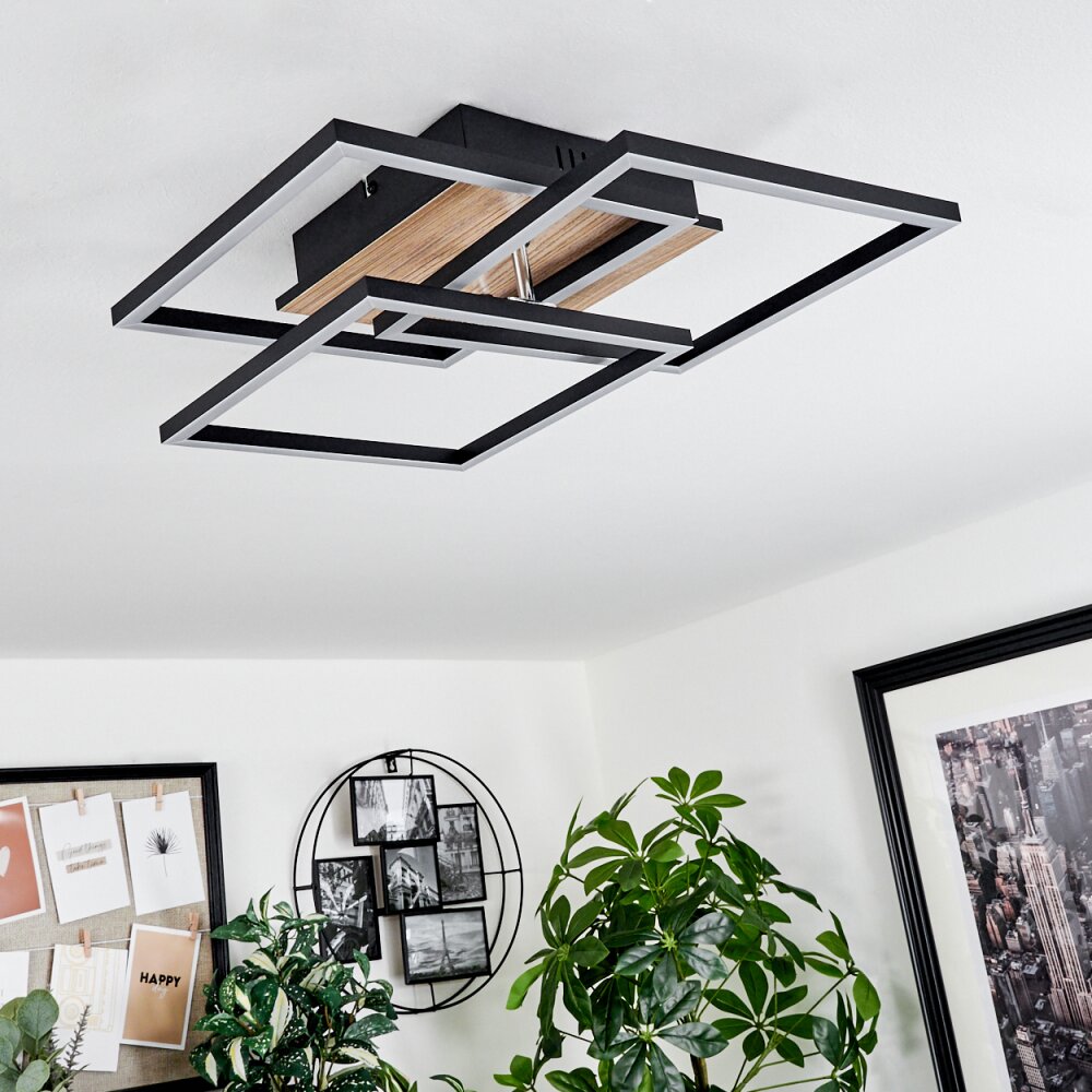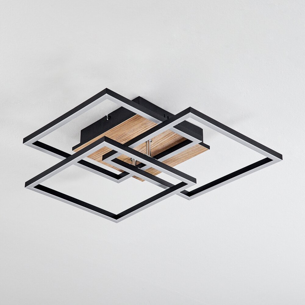 Oberegg Plafondlamp LED houtlook, Zwart, 1-licht, Afstandsbediening