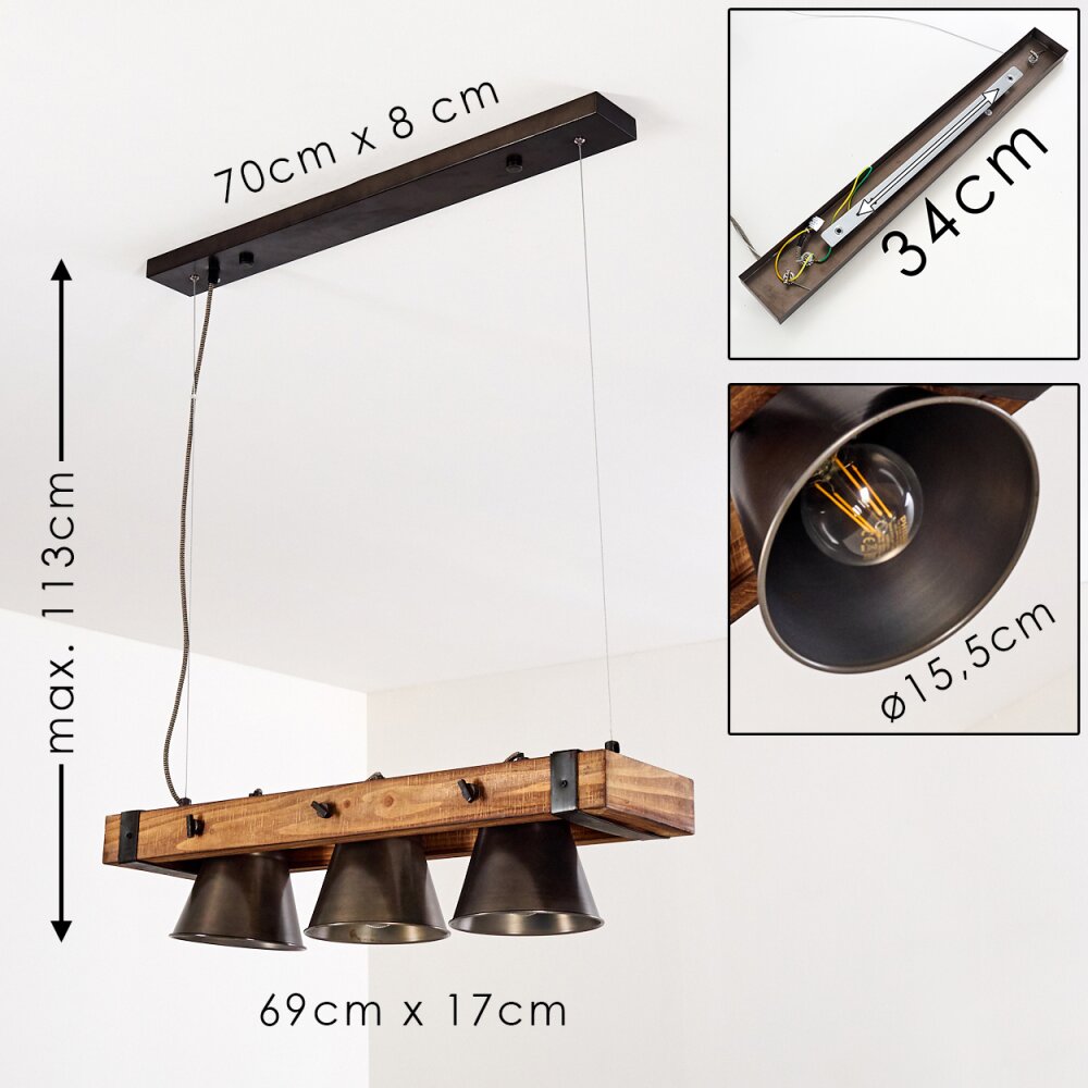 Oksbol Hanglamp Hout donker, Zwart, 3-lichts