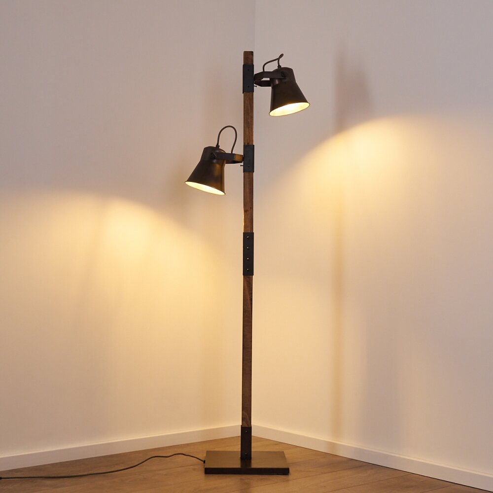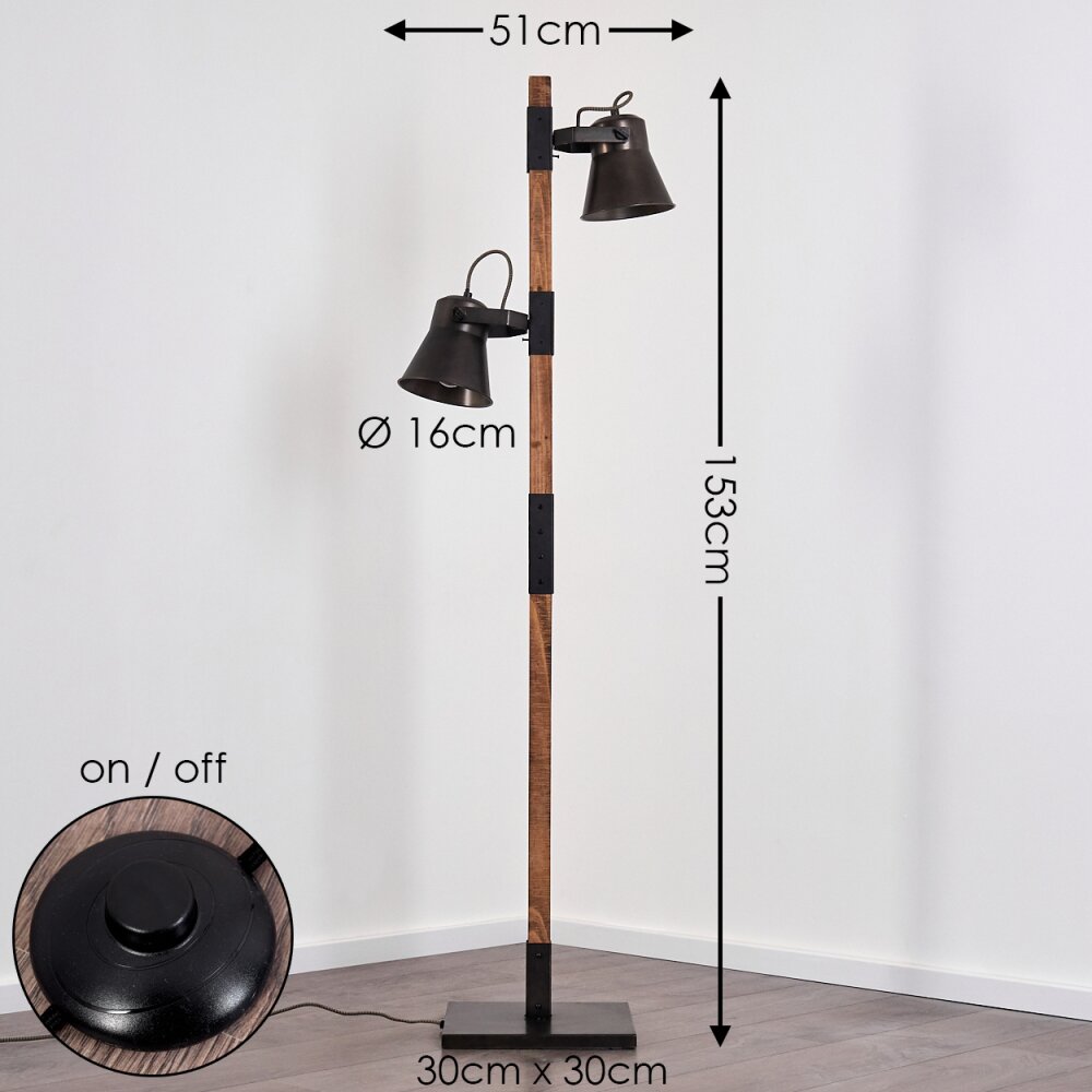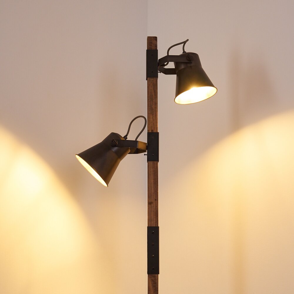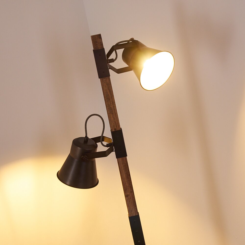 Oksbol Staande lamp Donkerbruin, Grijs, Staal geborsteld, 2-lichts