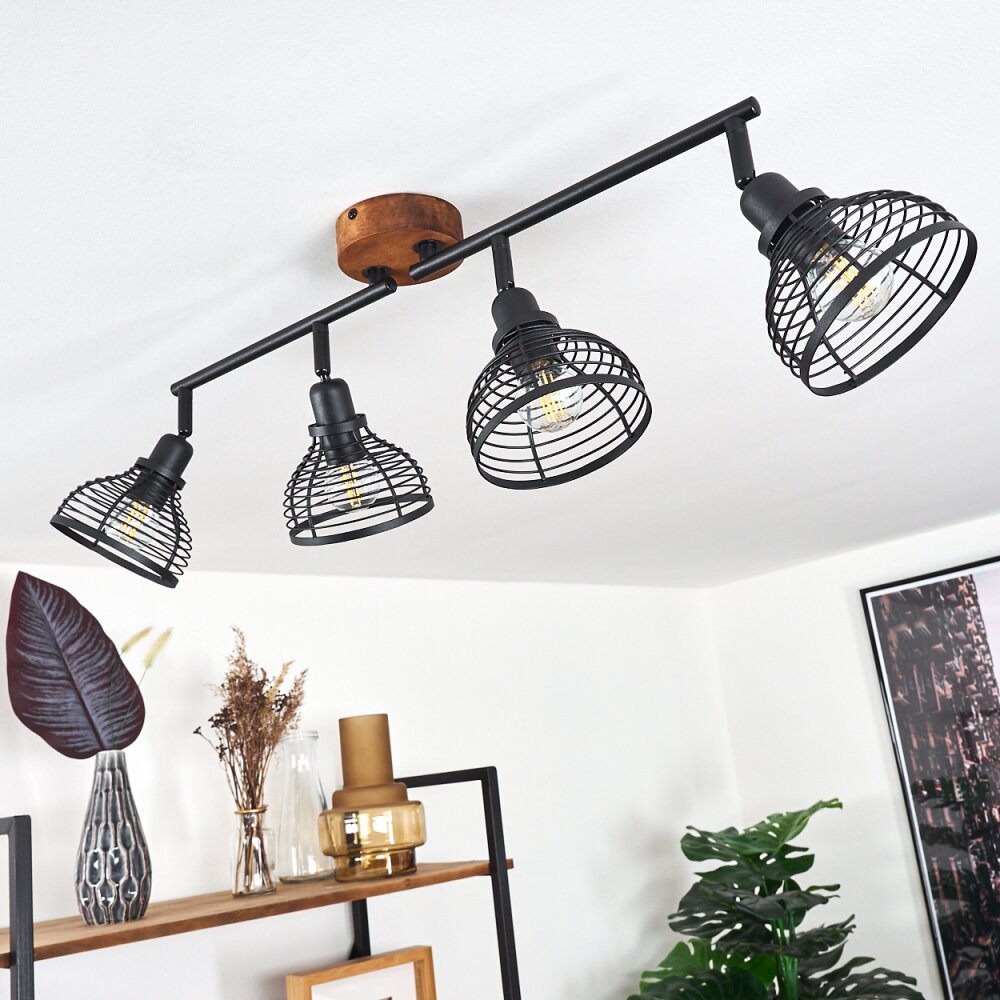 Omba Plafondlamp Hout donker, Zwart, 4-lichts