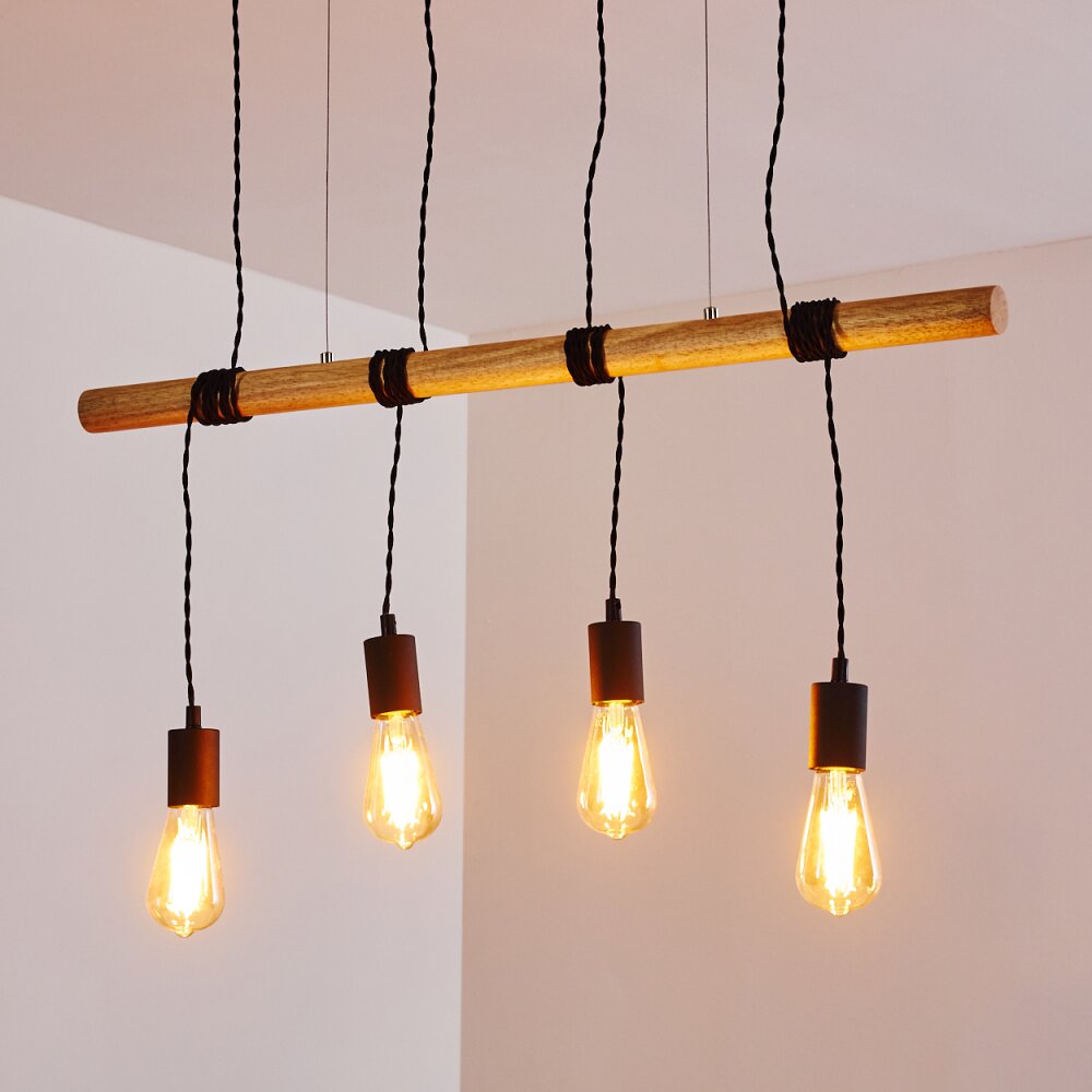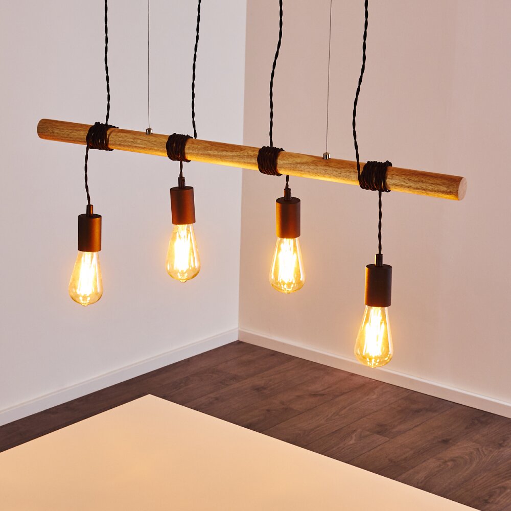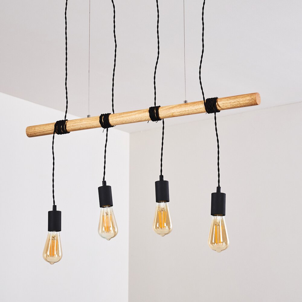 Yaak Hanglamp Hout licht, Zwart, 6-lichts