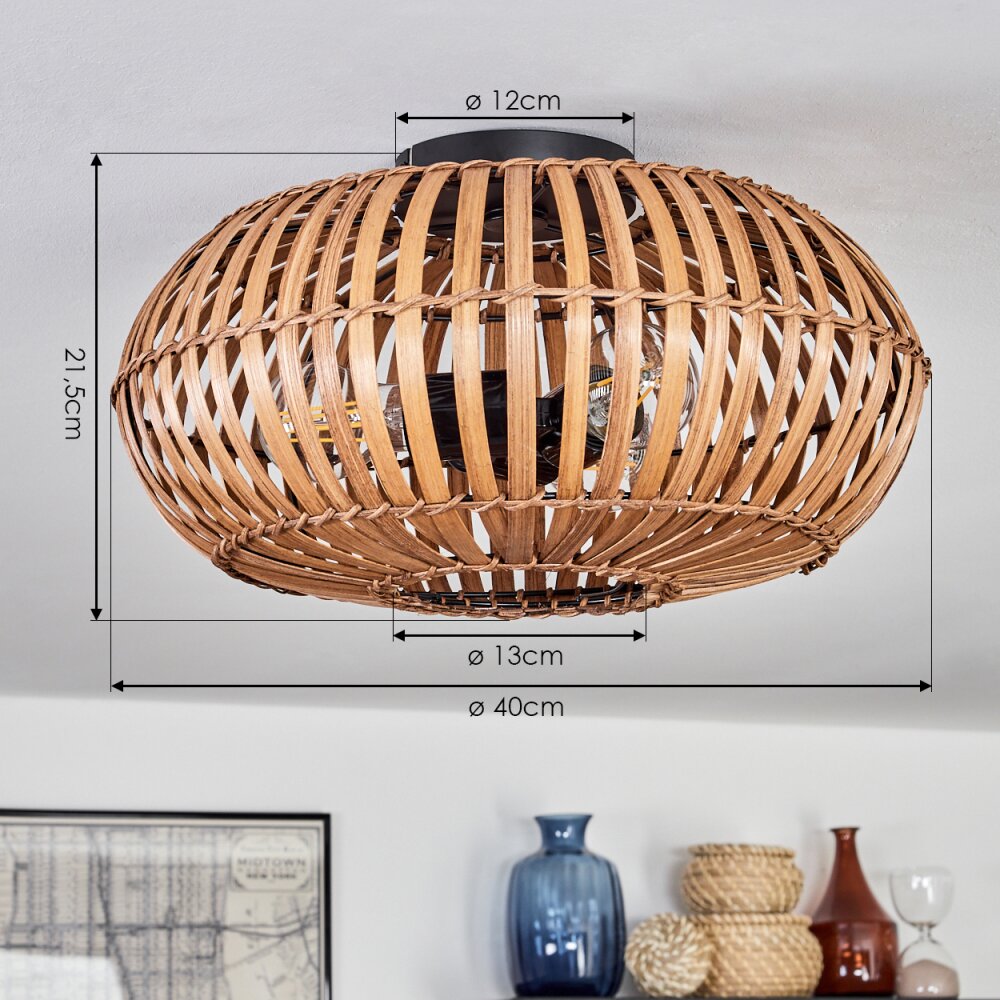Oravi Plafondlamp Donkerbruin, Natuurlijke kleuren, Zwart, 3-lichts