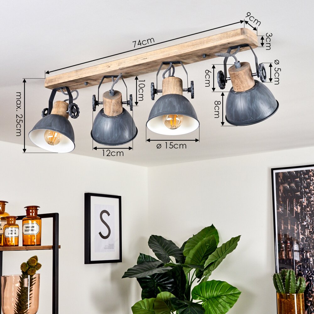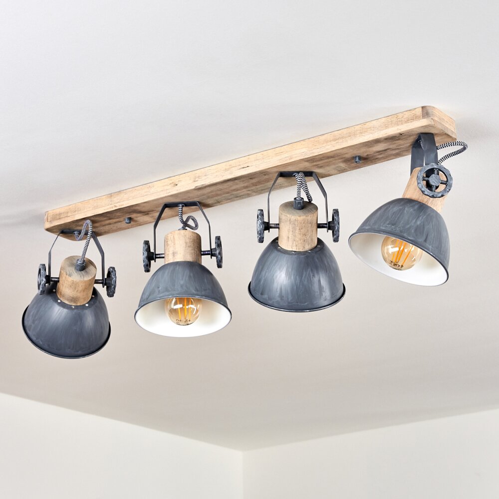 Orny Plafondlamp Grijs, Hout licht, 4-lichts