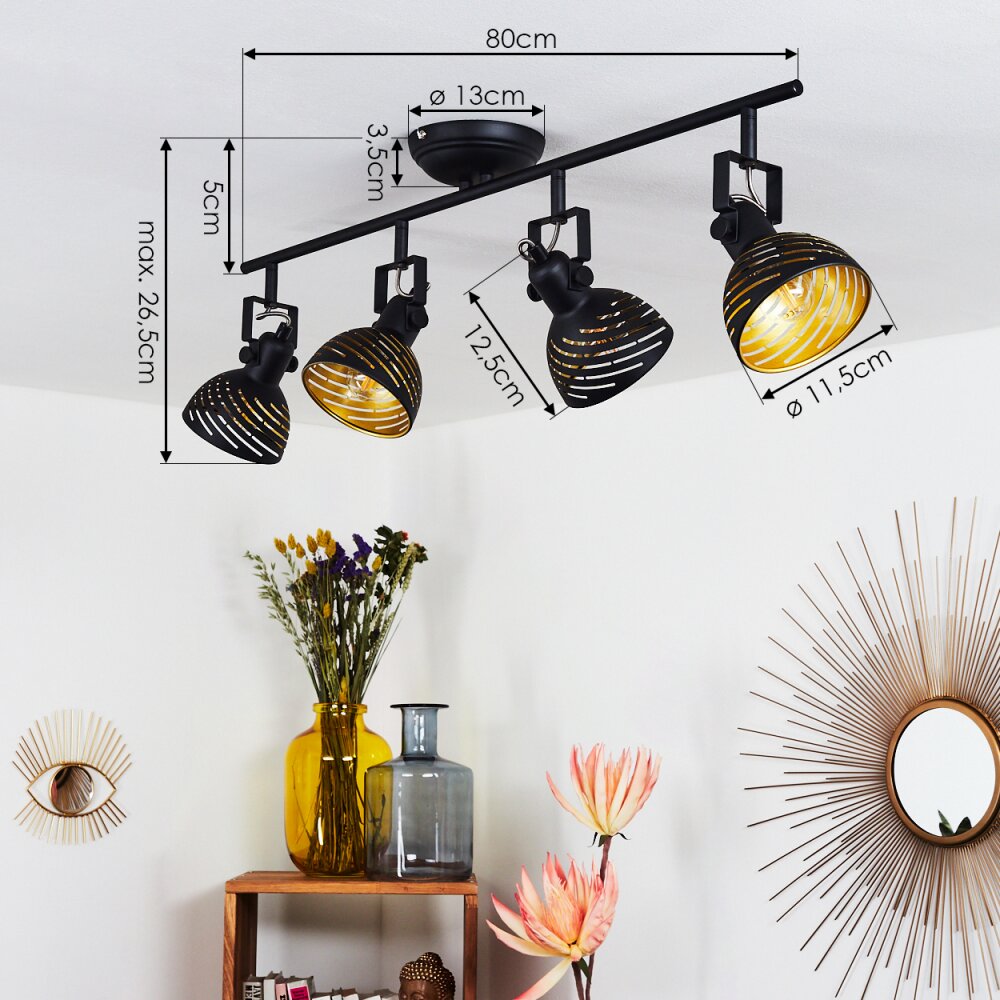 Osina Plafondlamp Chroom, Zwart, 4-lichts