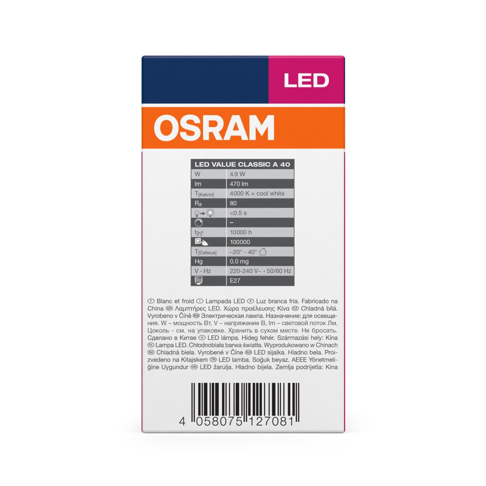 Osram E27 LED 4.9 Watt neutraal wit 470 Lumen