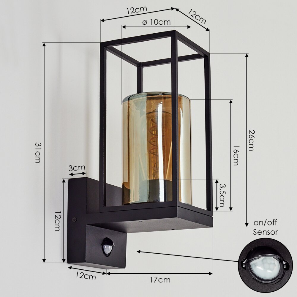 Tieva Buiten muurverlichting Zwart, 1-licht, Bewegingsmelder