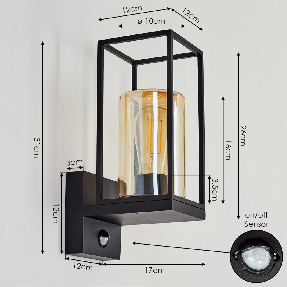 Palanga Buiten muurverlichting Zwart, 1-licht, Bewegingsmelder