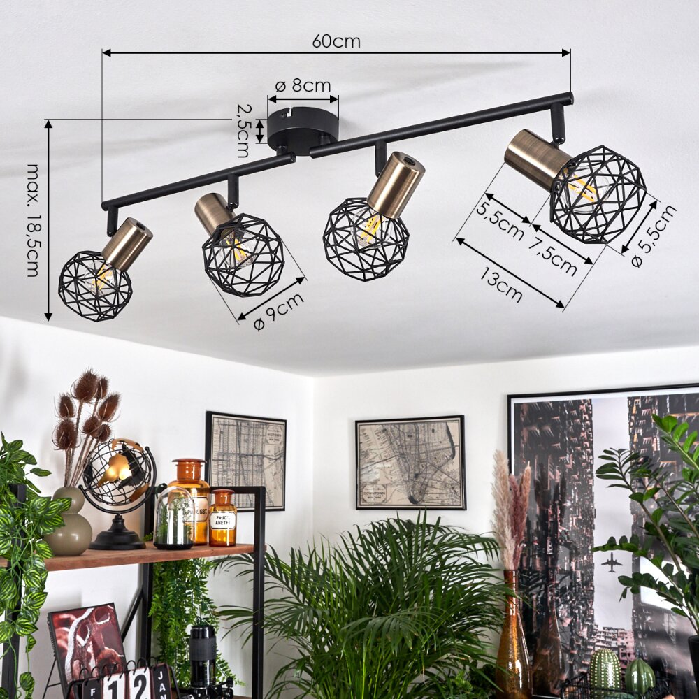 Palmira Plafondlamp Goud, Zwart, 4-lichts