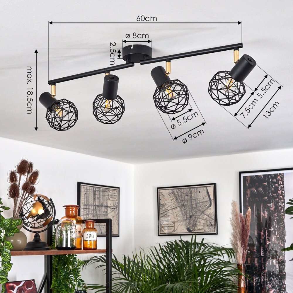 Palmira Plafondlamp Goud, Zwart, 4-lichts