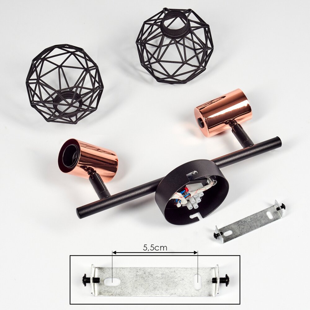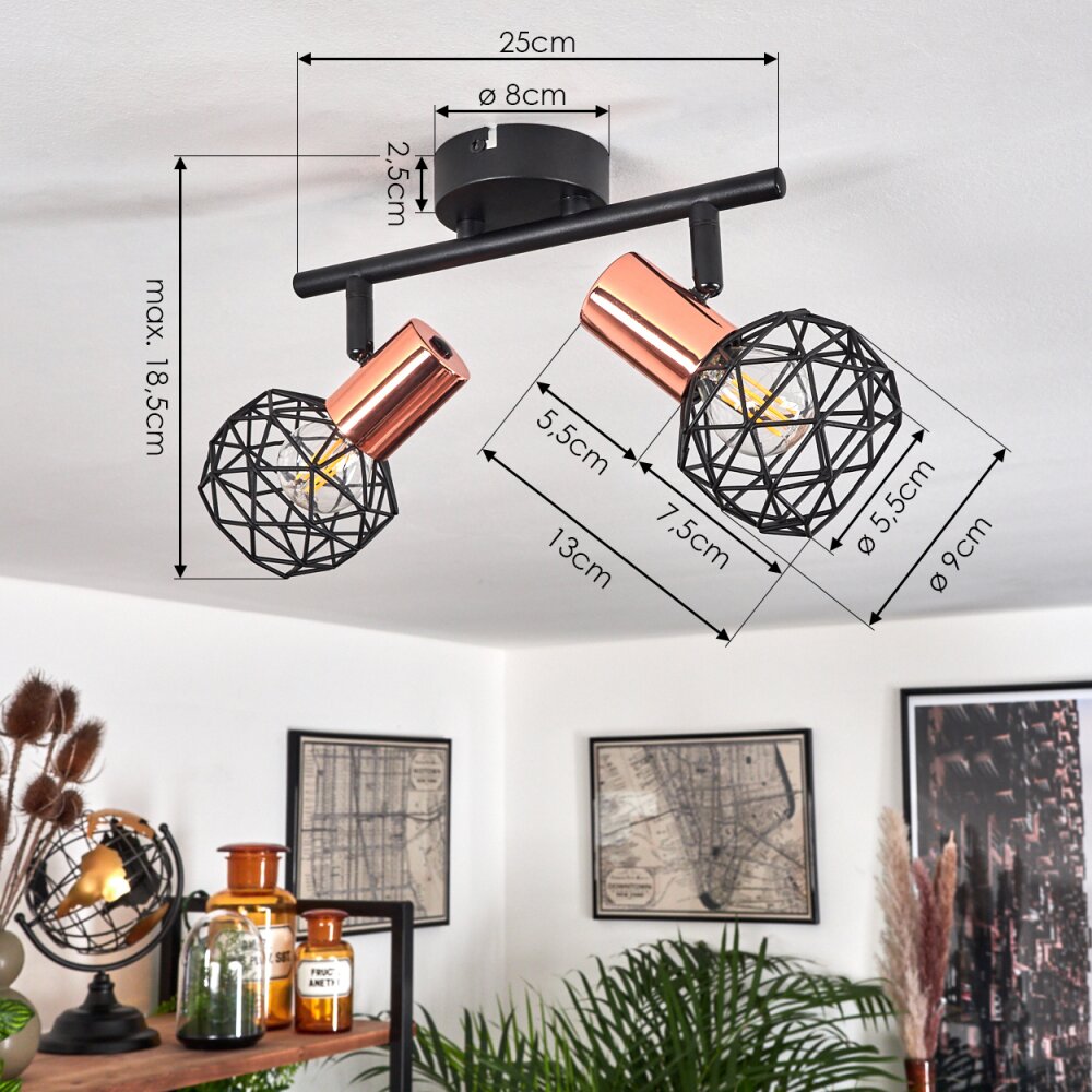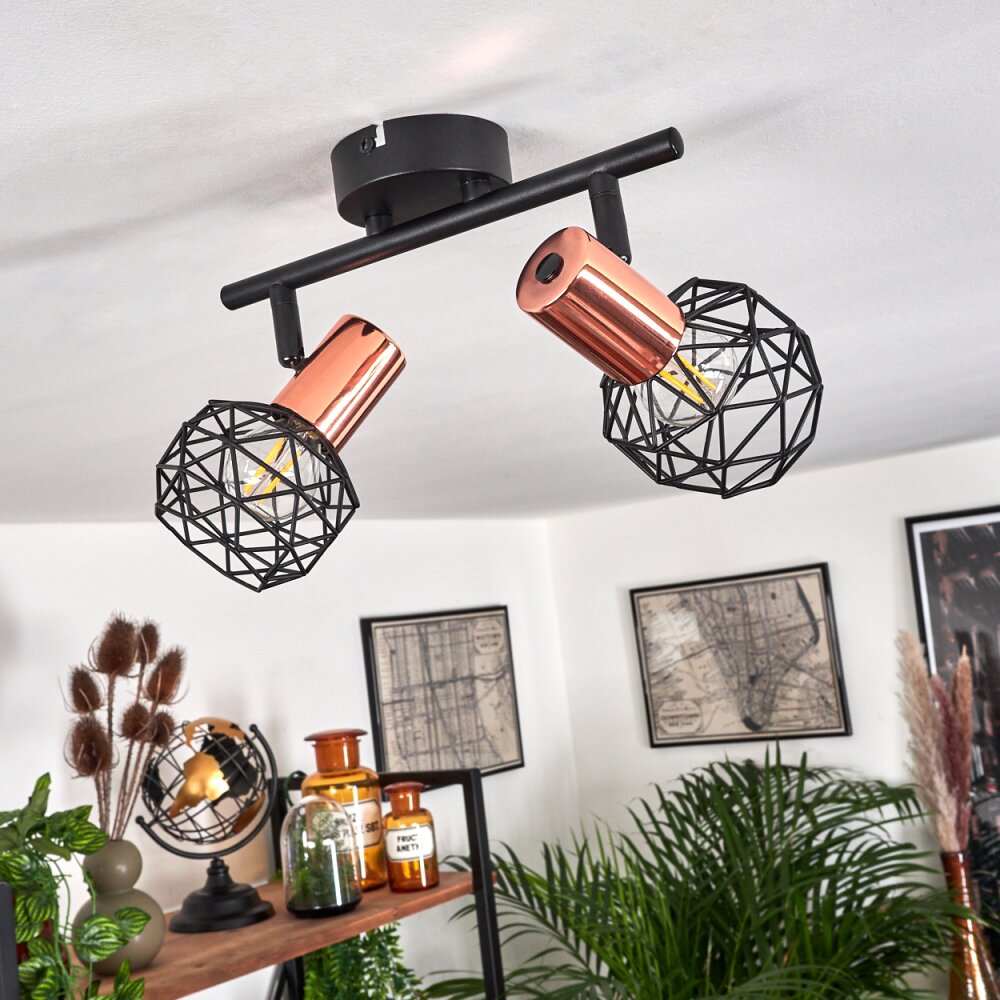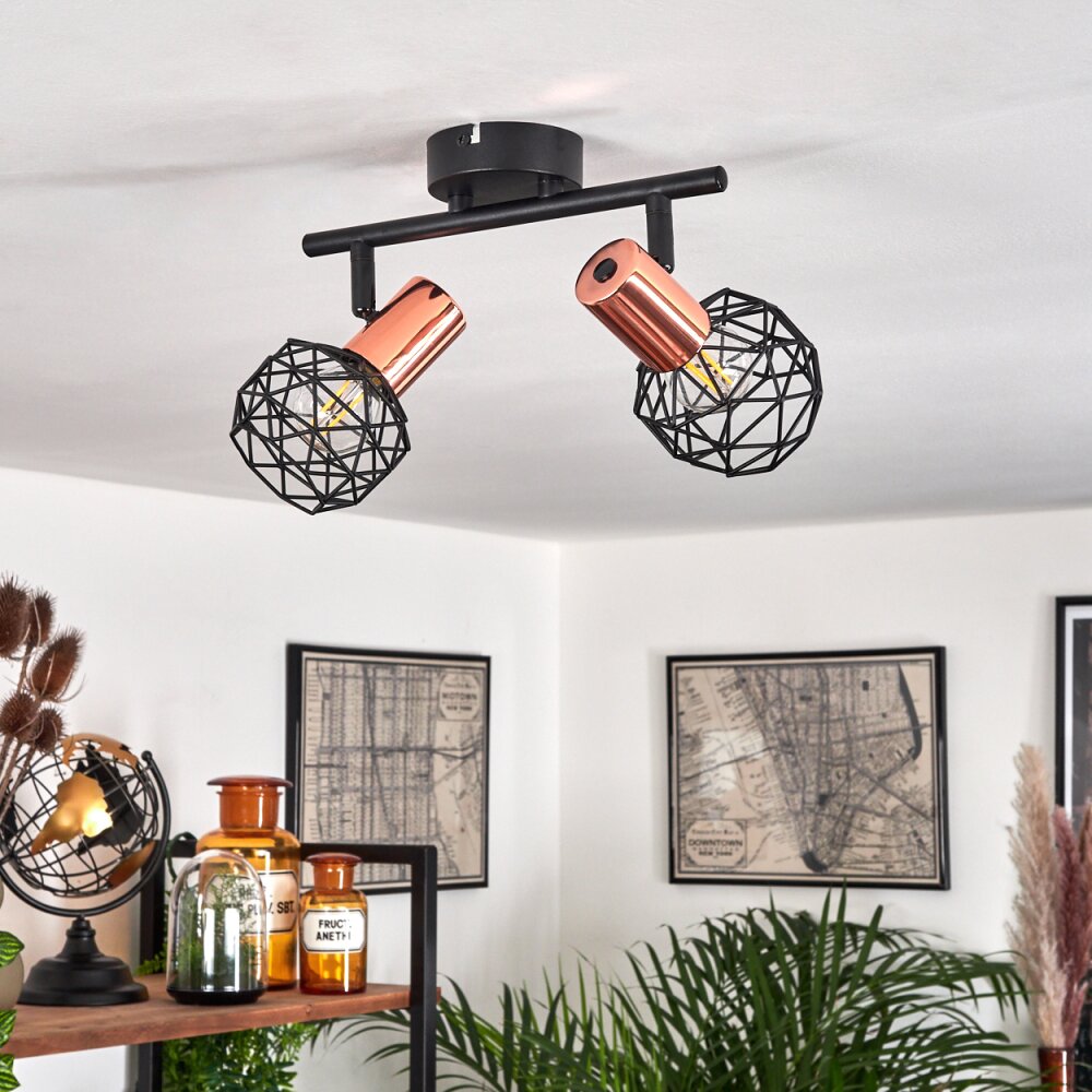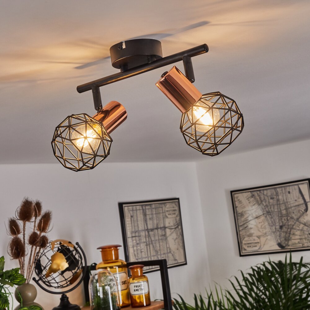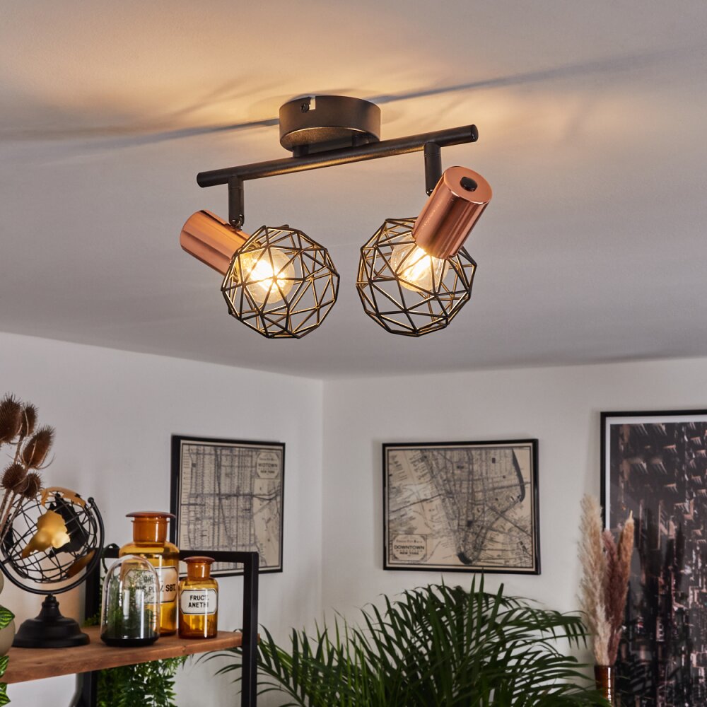 Palmira Plafondlamp Koperkleurig, Zwart, 2-lichts