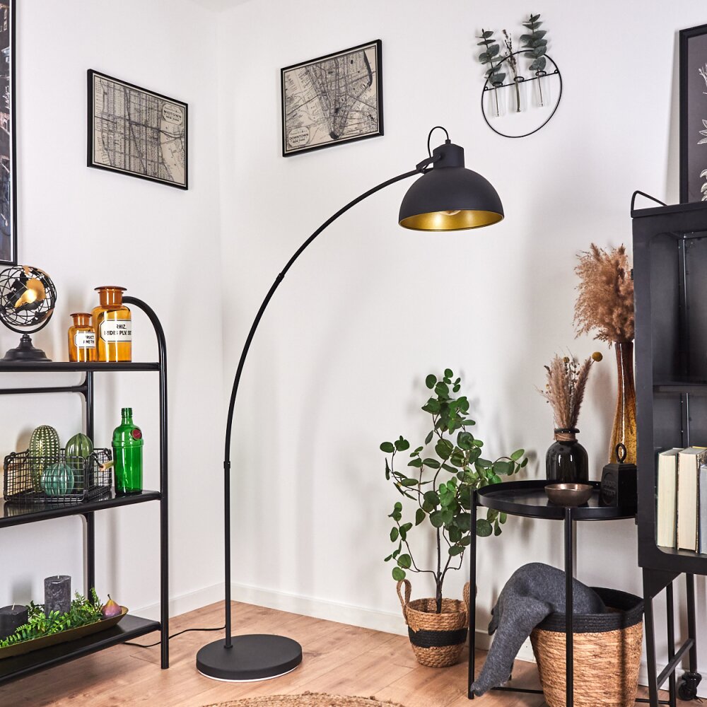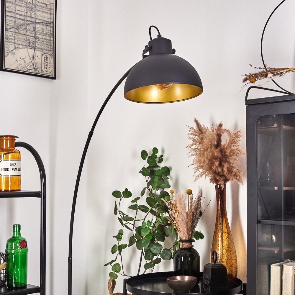Kongakut Staande lamp Goud, Zwart, 1-licht, Stoffen kap