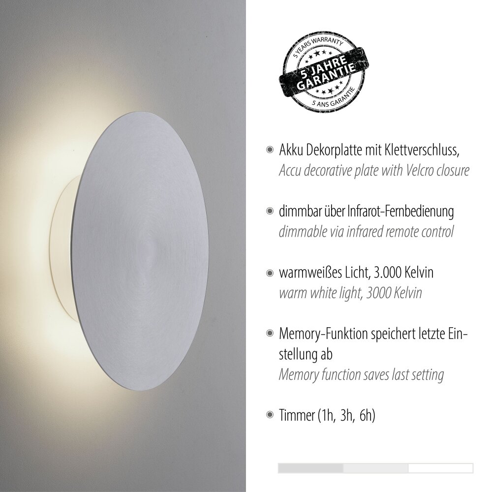 Paul Neuhaus AKKU PUNTUA Muurlamp LED Wit, 1-licht, Afstandsbediening