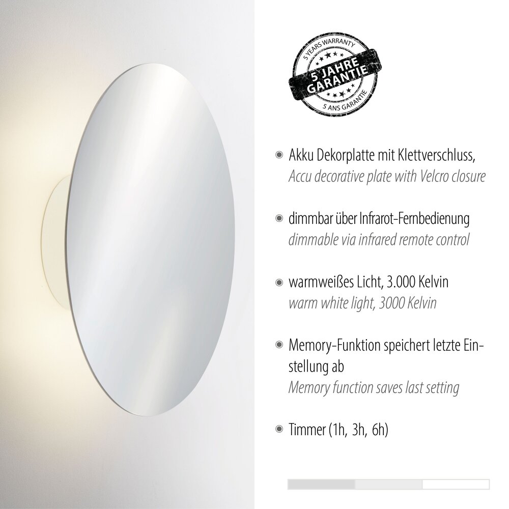 Paul Neuhaus AKKU PUNTUA Muurlamp LED Wit, 1-licht, Afstandsbediening