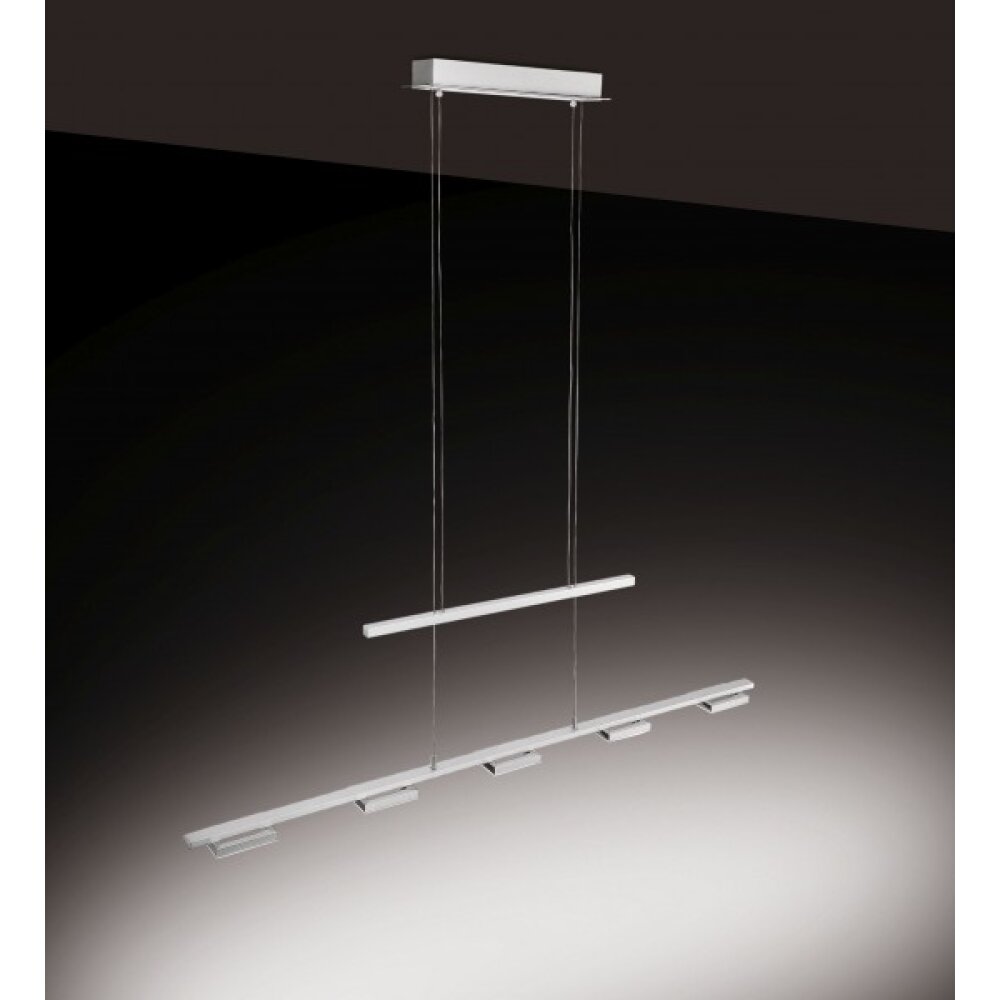 Leuchten-Direkt Ls-OPTI Hanglamp LED roestvrij staal, 8-lichts, Afstandsbediening, Kleurwisselaar