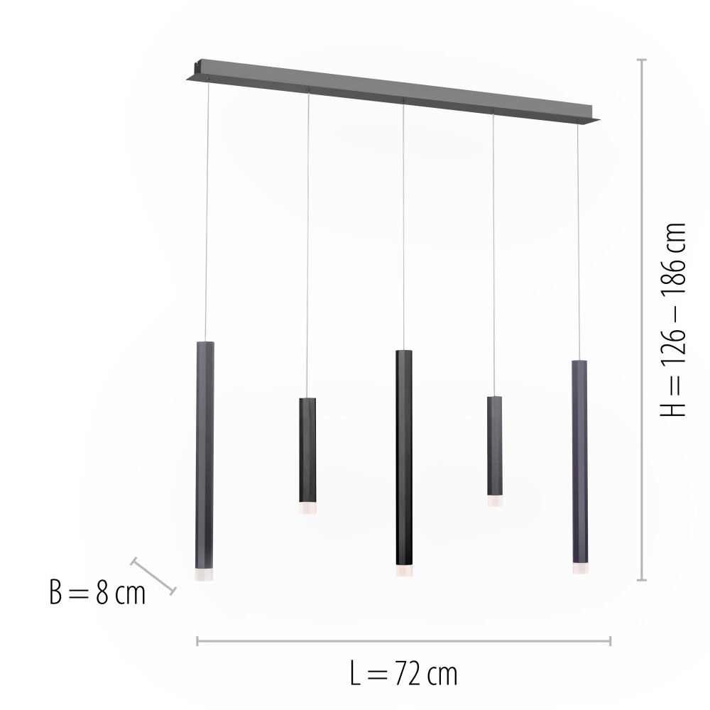 Paul Neuhaus PURE-GEMIN Hanglamp LED Aluminium, Zwart, 5-lichts