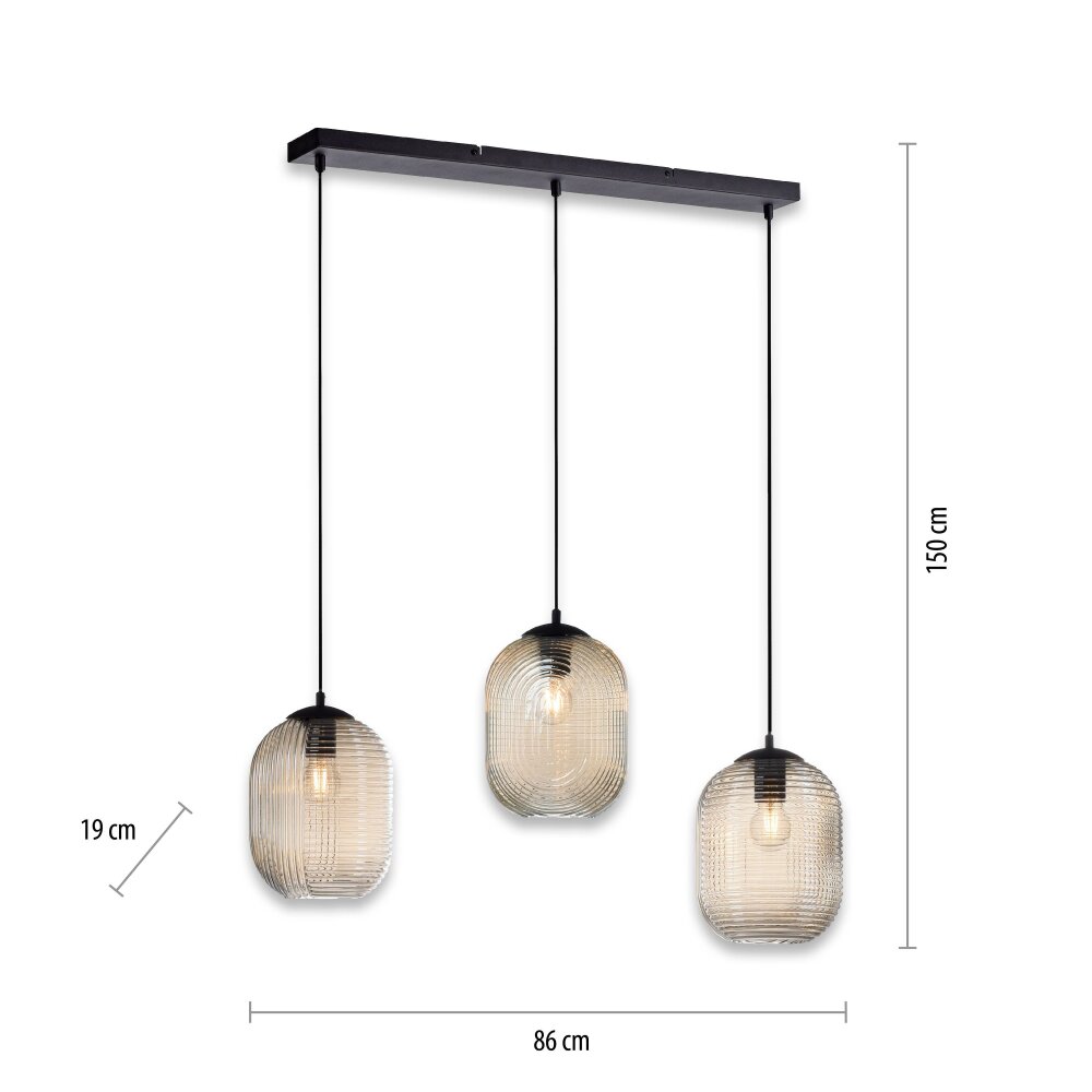 Lutarp Hanglamp, Hanglamp Chroom, Zwart, 3-lichts