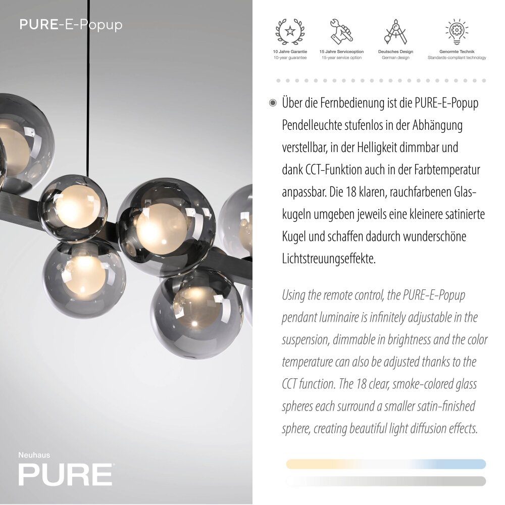 Paul Neuhaus Verlichting E-Popup Hanglamp LED Grijs, 18-lichts, Afstandsbediening