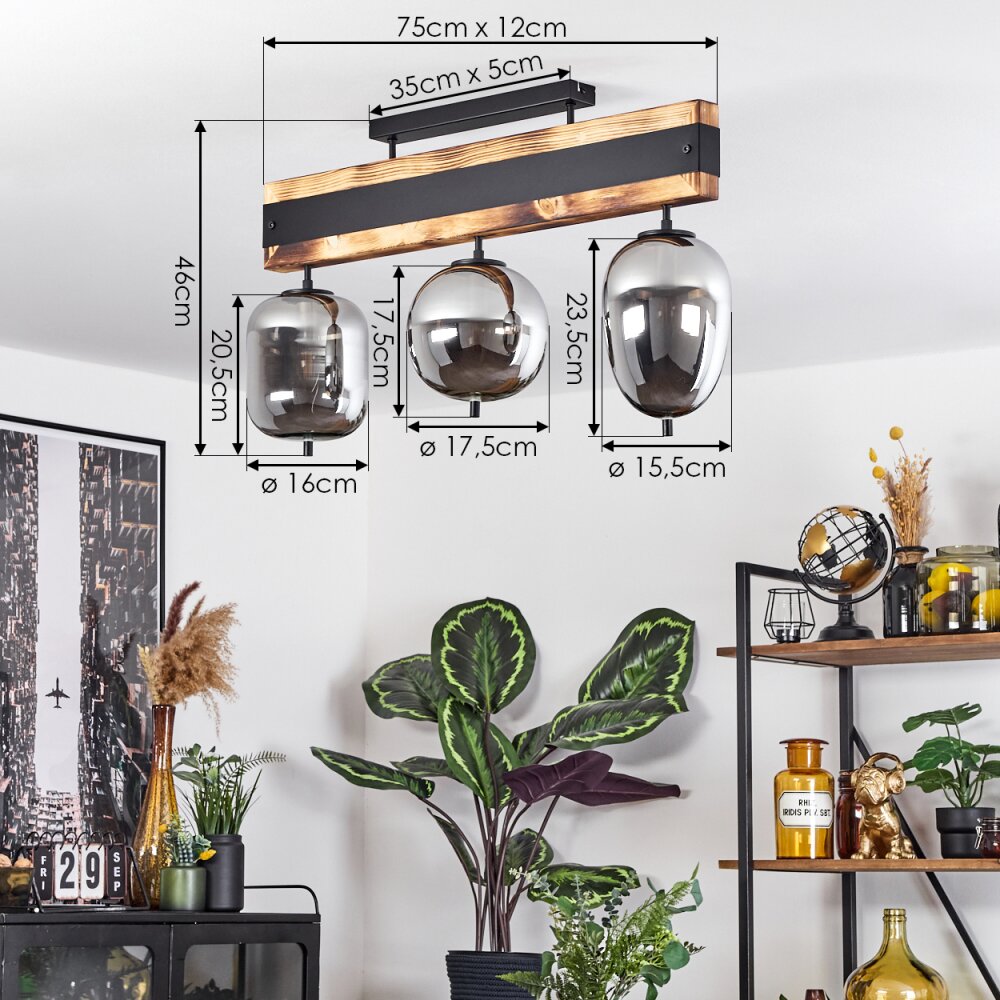 Roxa Plafondlamp Hout licht, Zwart, 3-lichts