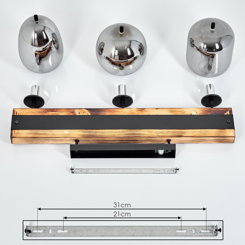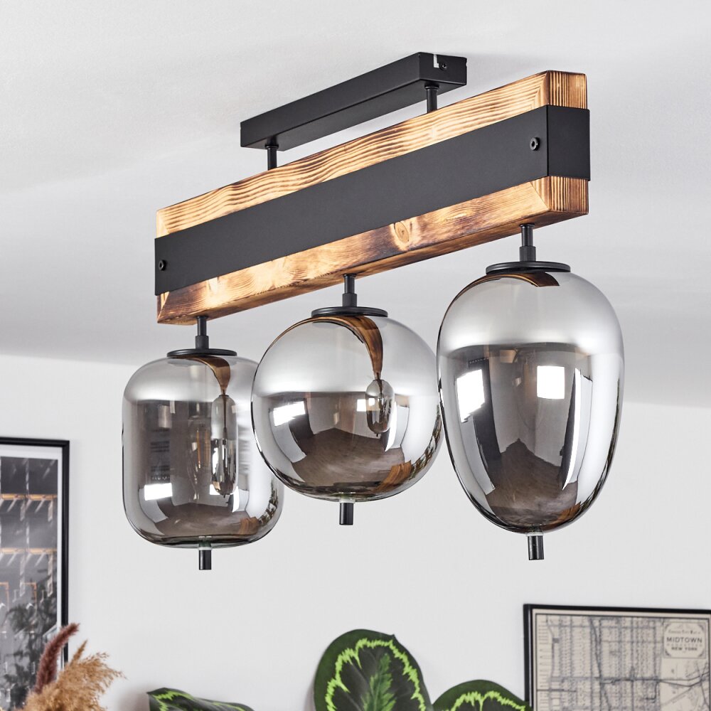 Vouhet Plafondlamp Bruin, houtlook, Zwart, 3-lichts