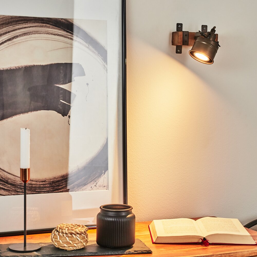 Pehefito Muurlamp Grijs, Hout donker, Zwart, 1-licht