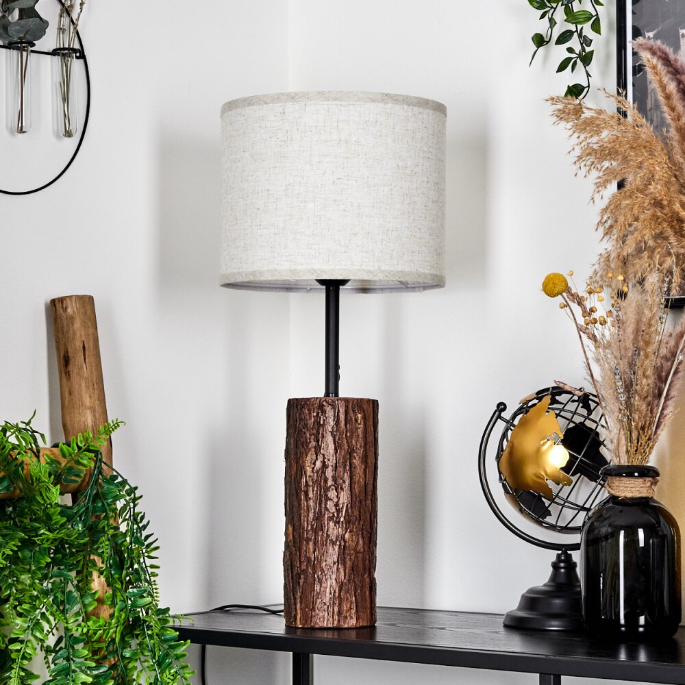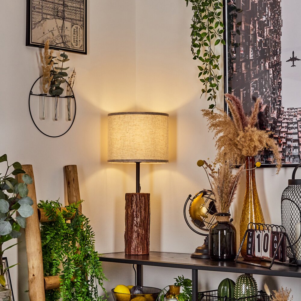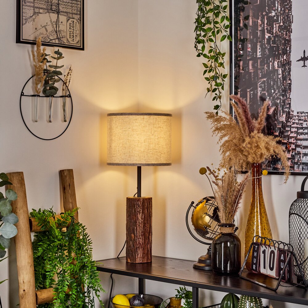 Korhola Tafellamp Bruin, Chroom, houtlook, 1-licht