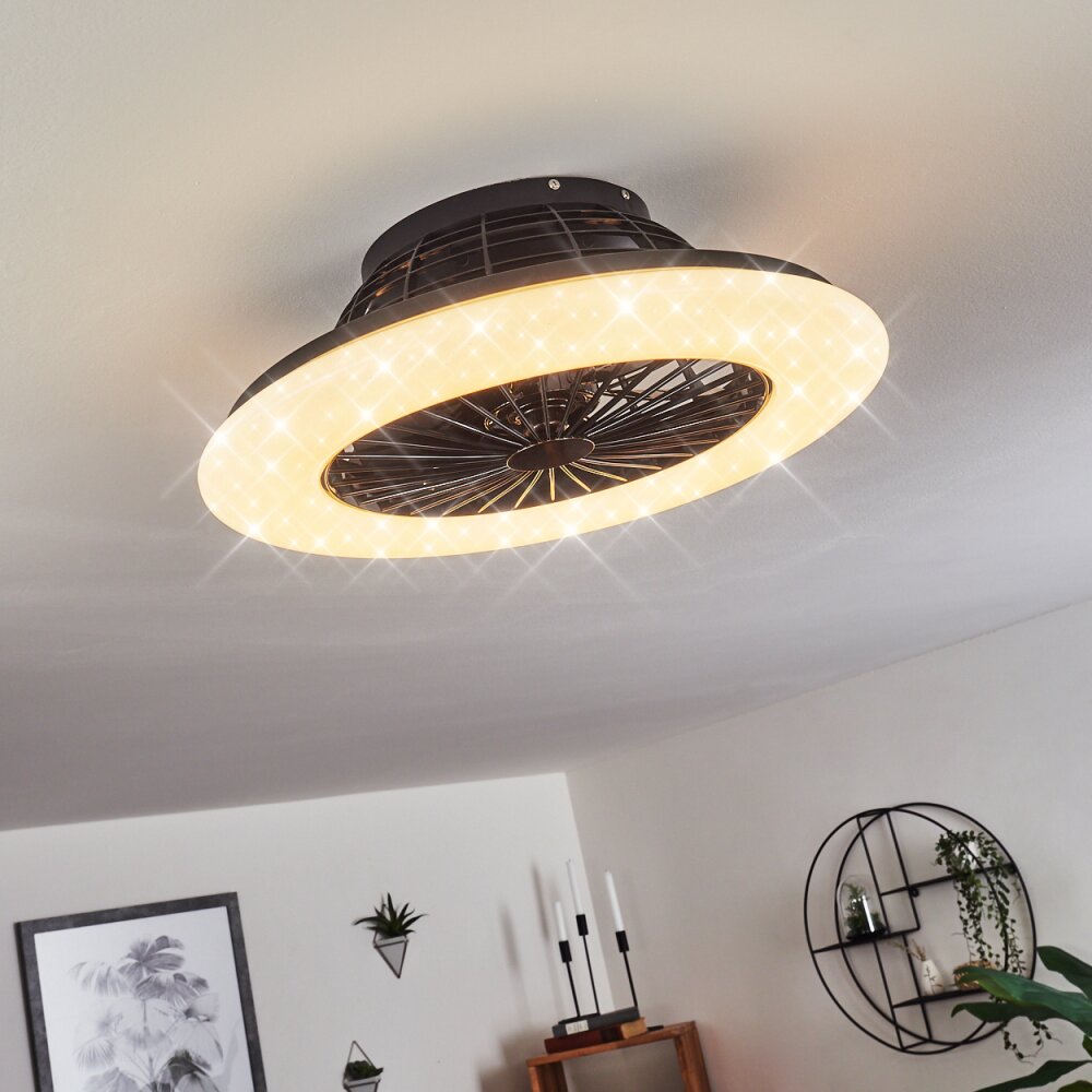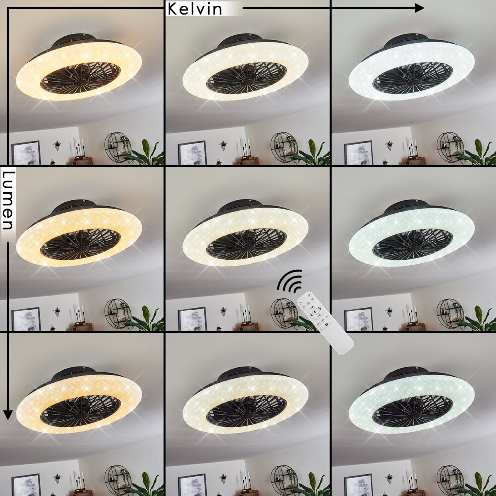 Piraeus plafondventilator LED Zwart, 1-licht, Afstandsbediening