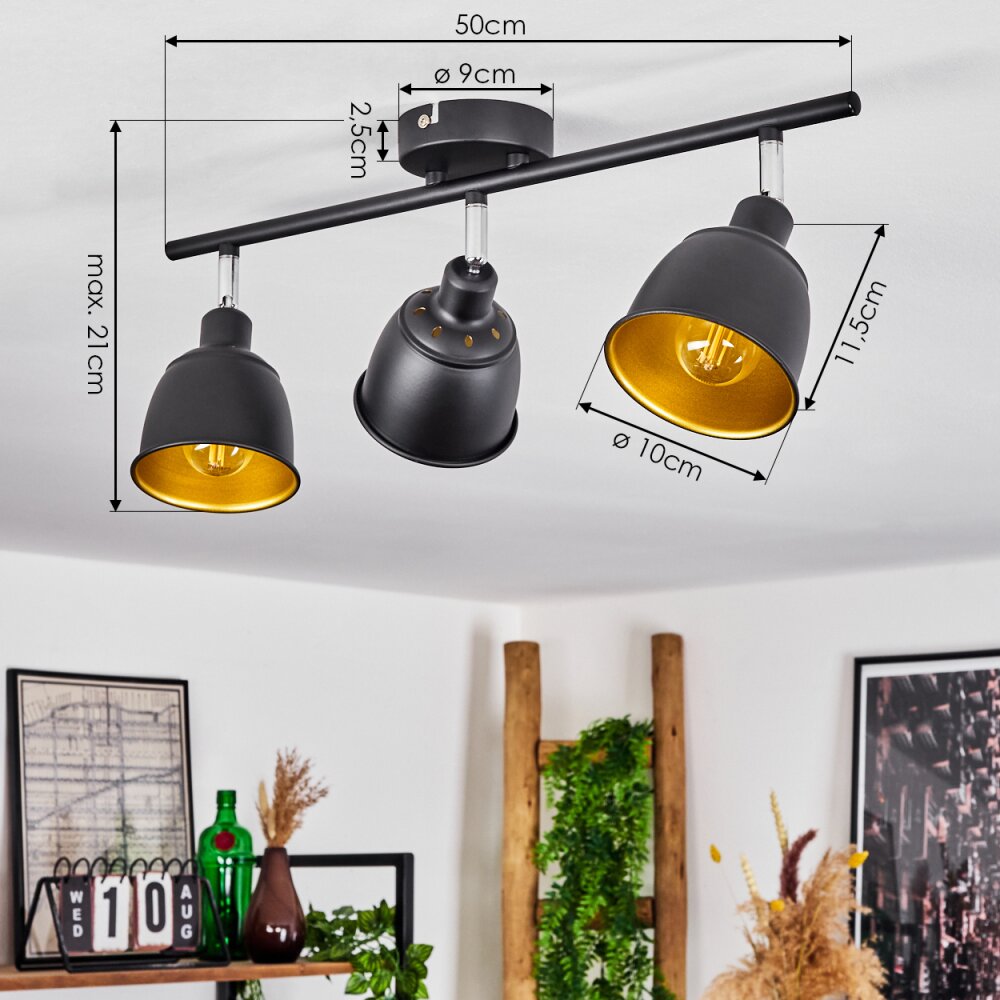 Pistrino Plafondlamp Chroom, Zwart, 3-lichts