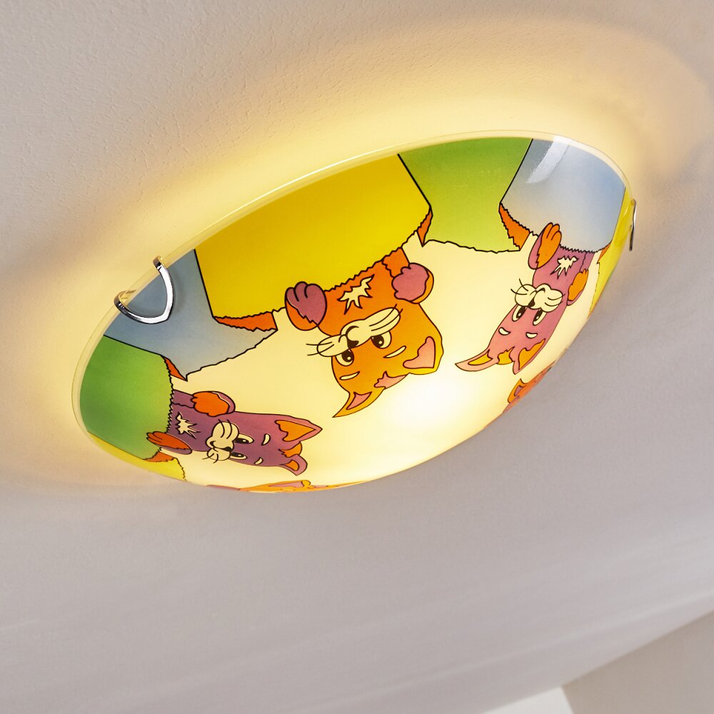 Pizzy Katze Plafondlamp Chroom, Wit, 2-lichts