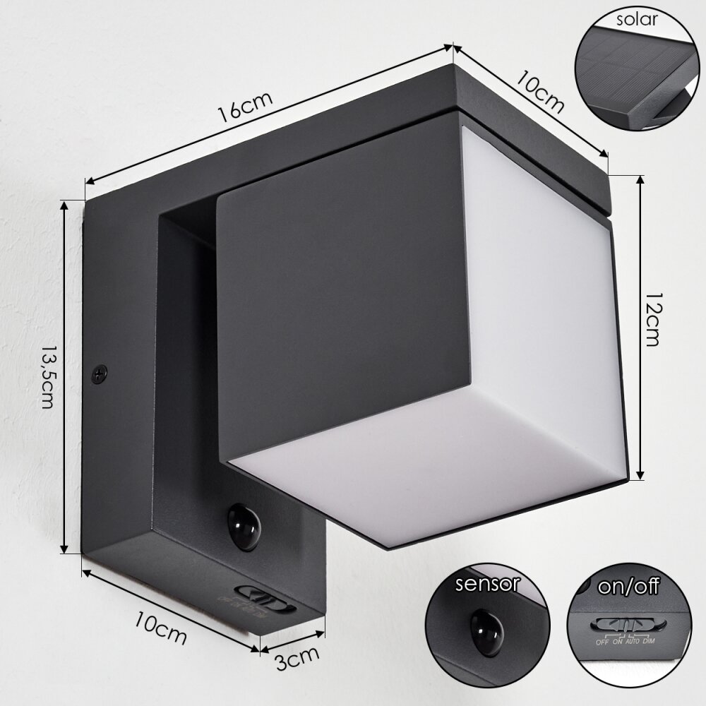 Lapeer Wandlamp op zonne-energie LED Zwart, 1-licht