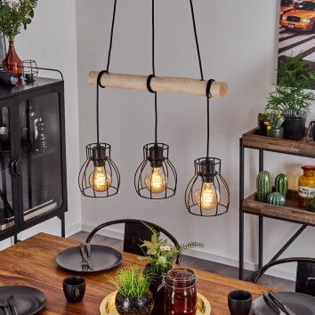 Podre Plafondlamp Hout licht, Zwart, 3-lichts