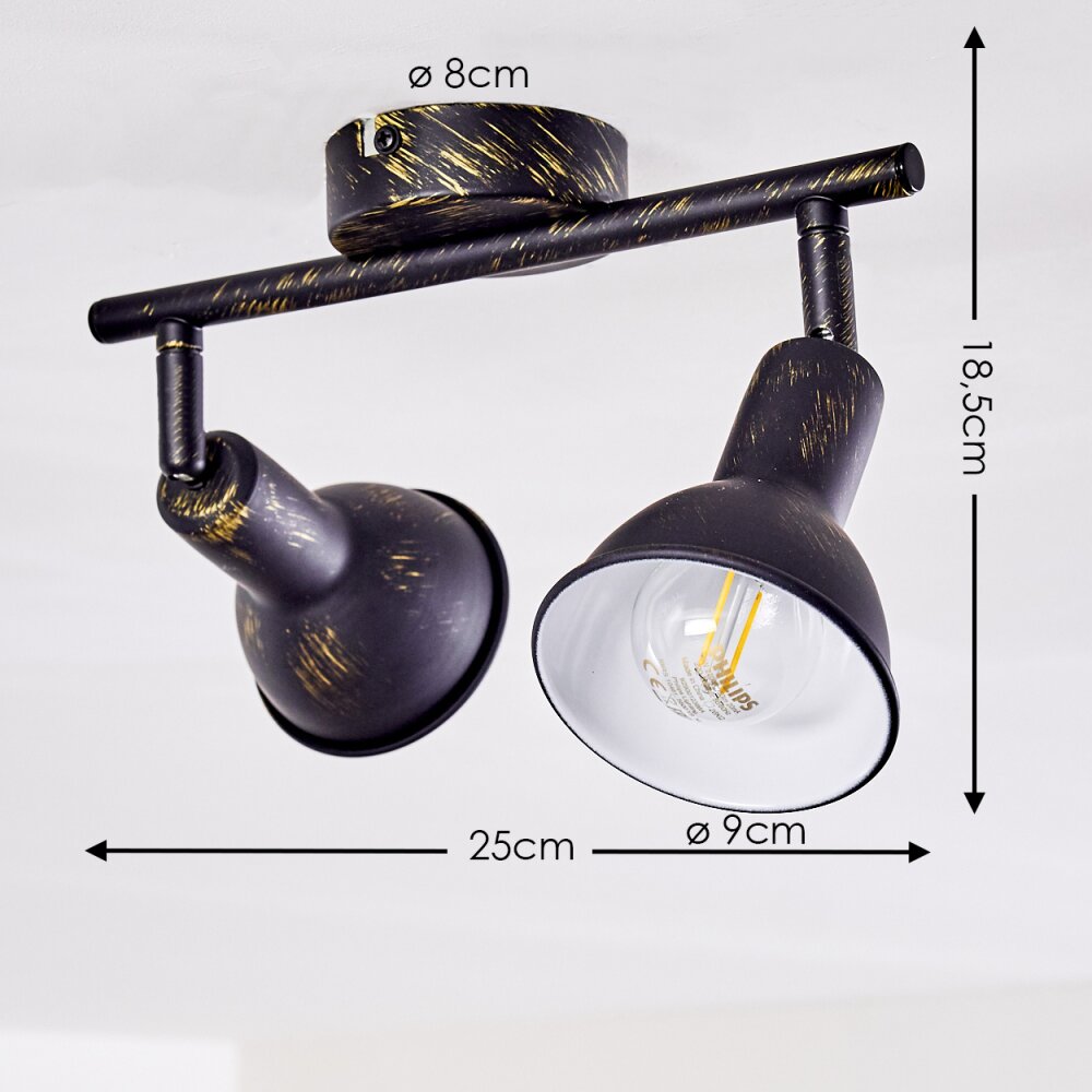Polmak Plafond spot Zwart-Goud, 2-lichts