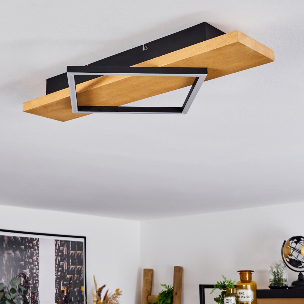 Pompu Plafondlamp LED Hout licht, Zwart, 1-licht