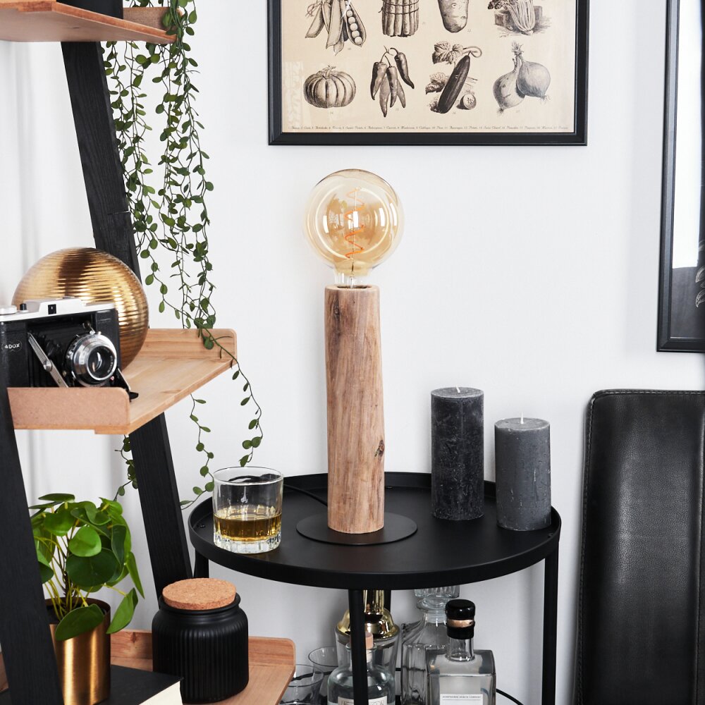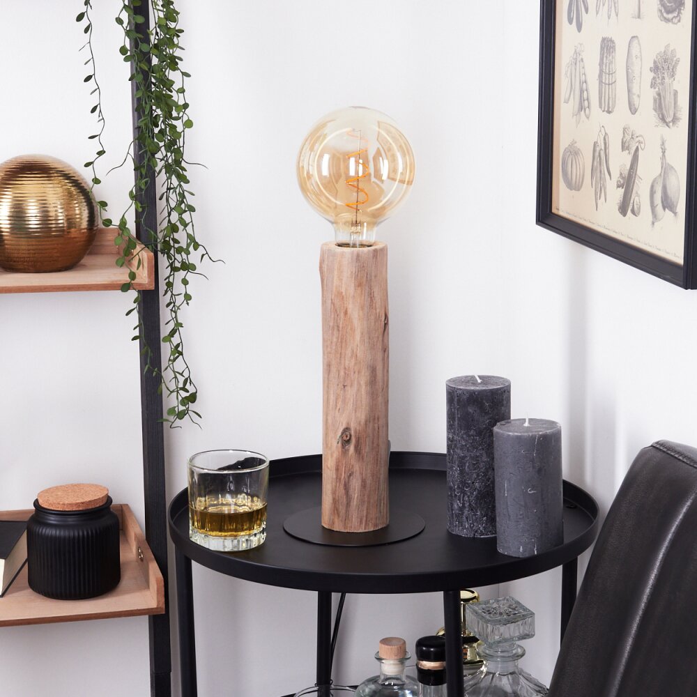 Chabian Tafellamp Bruin, houtlook, Zwart, 1-licht
