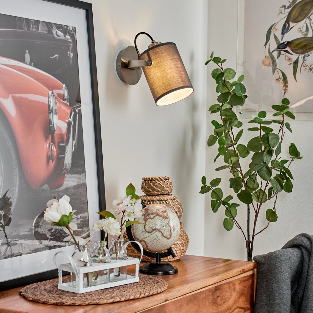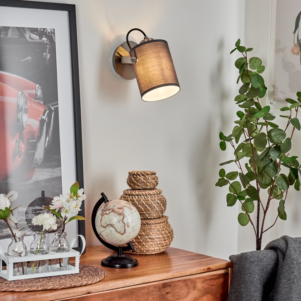 Puelches Muurlamp Nikkel mat, Zwart, 1-licht