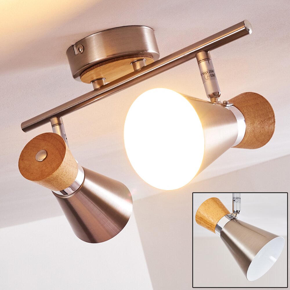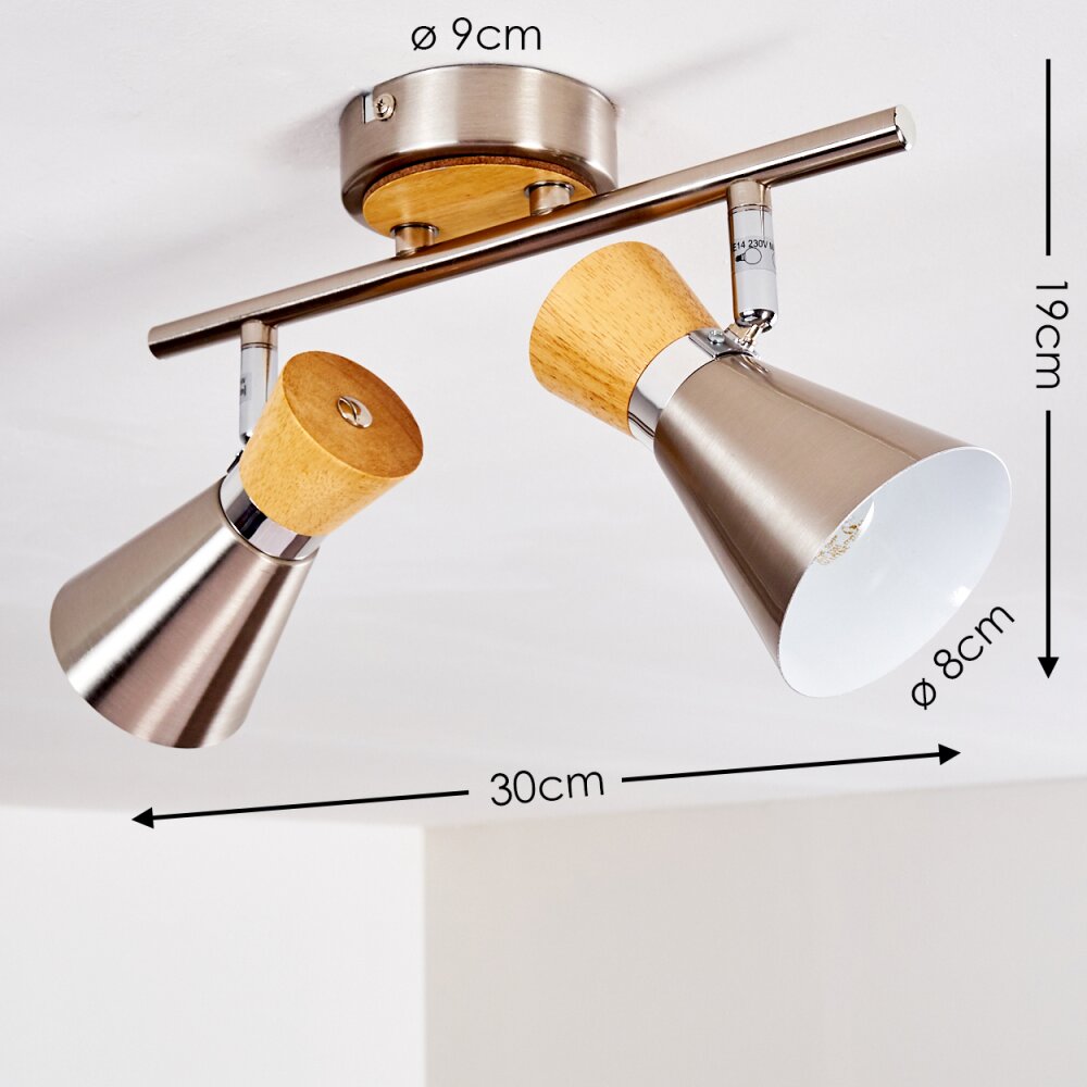 Pulau Plafondlamp Hout licht, Nikkel mat, 2-lichts