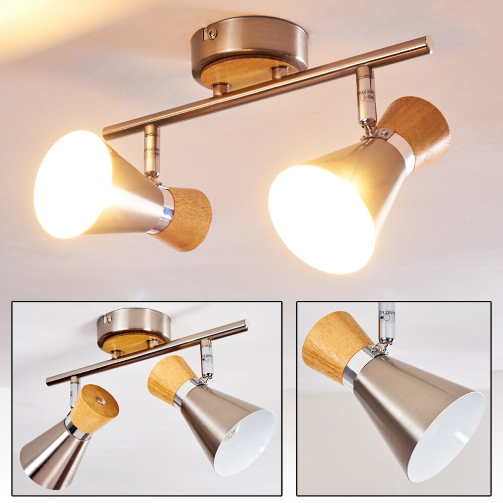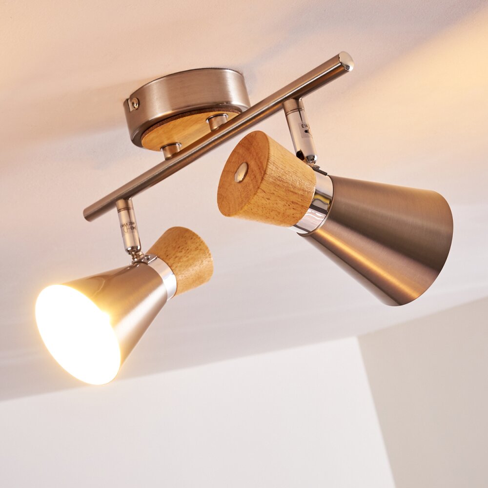 Icalma Plafondlamp Hout licht, Nikkel mat, 6-lichts