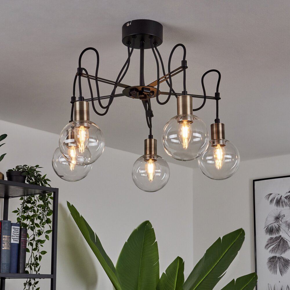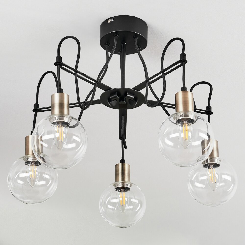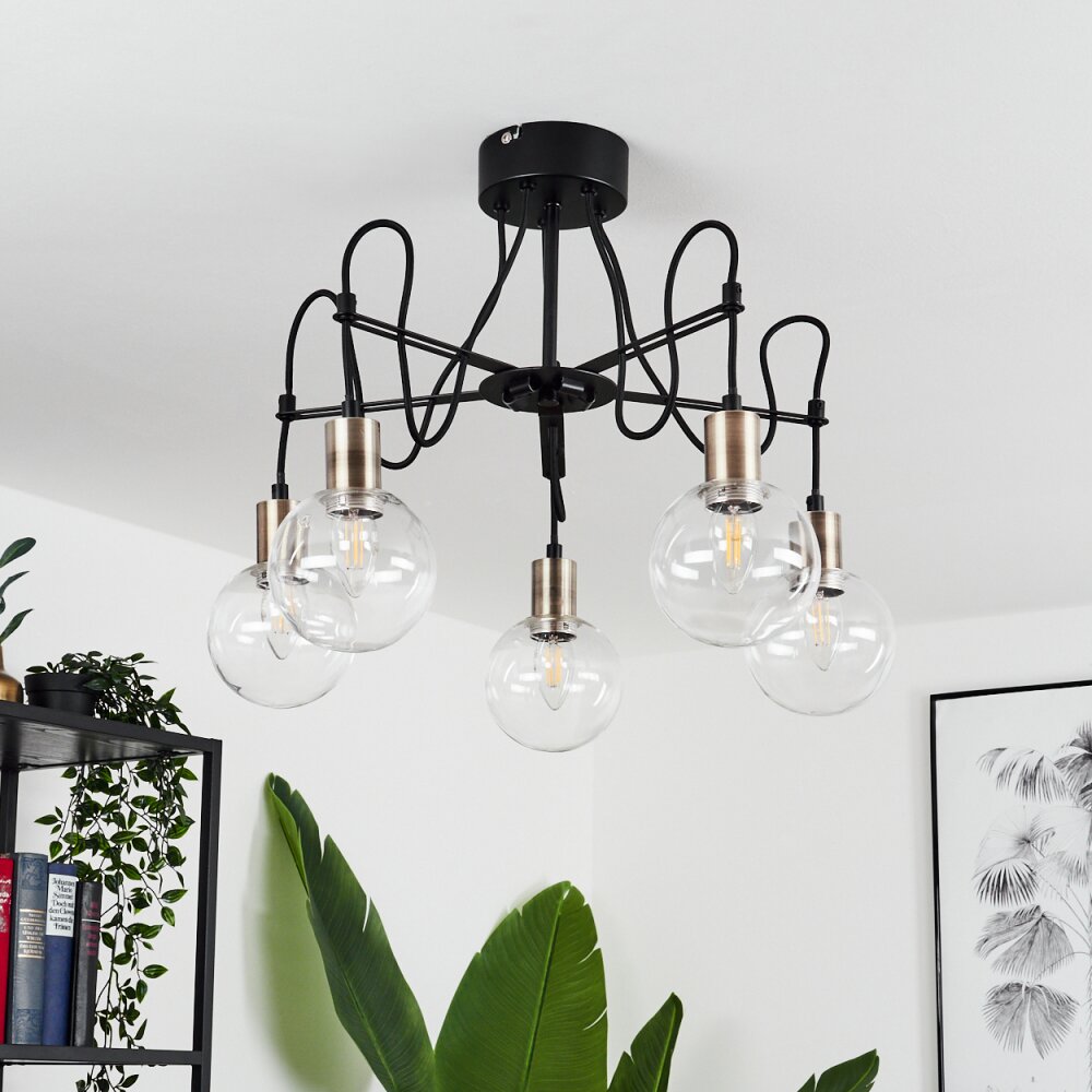Quento Plafondlamp Messing, Zwart, 5-lichts