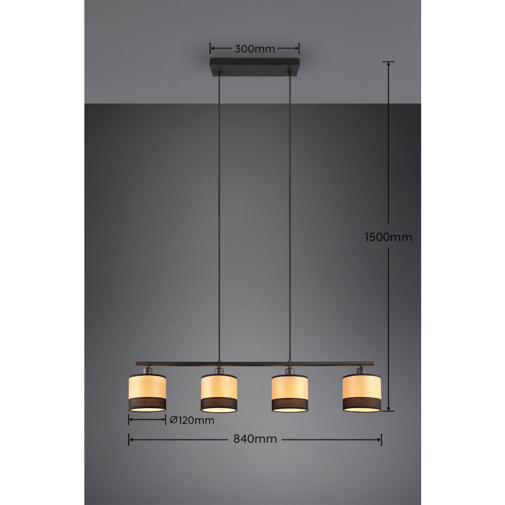 Winterthur Hanglamp LED Hout licht, Zwart, 1-licht