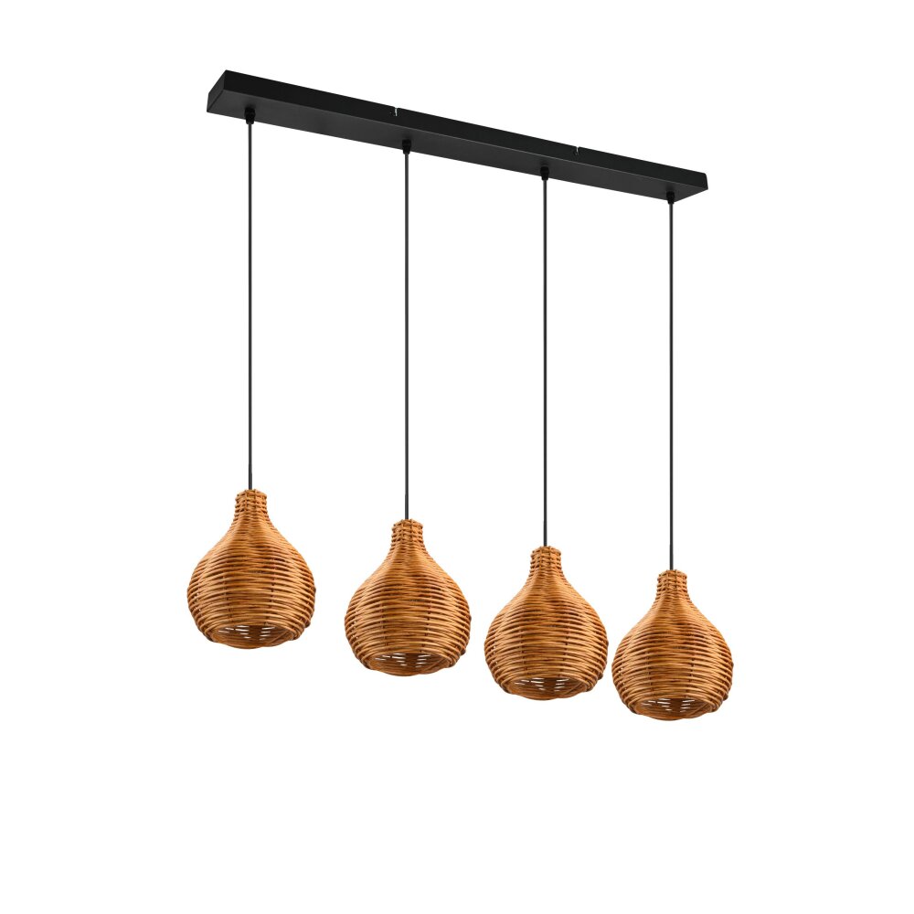 Soungou Hanglamp, Hanglamp Natuurlijke kleuren, Zwart, 4-lichts