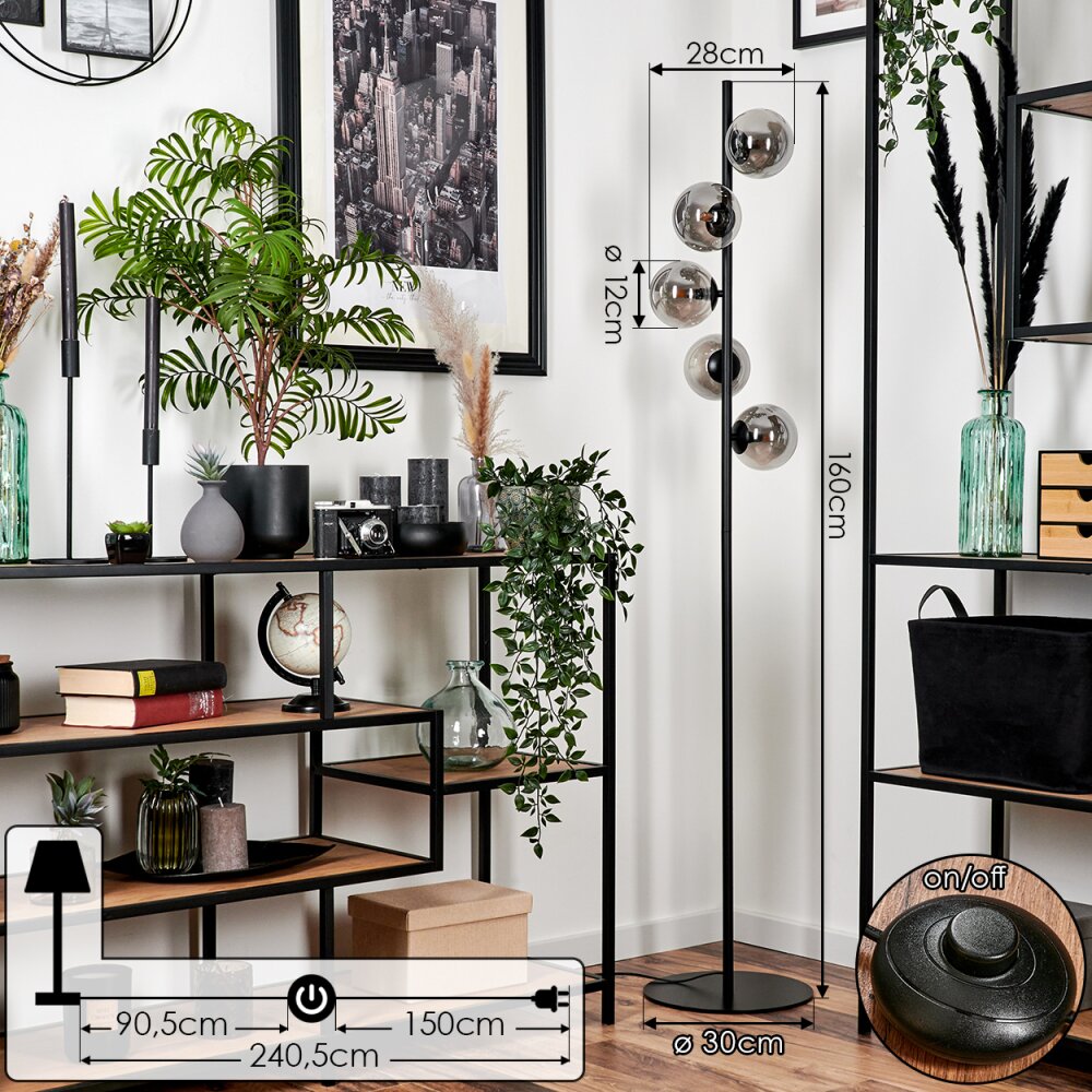 Remaisnil Staande lamp - Glas Zwart, 5-lichts