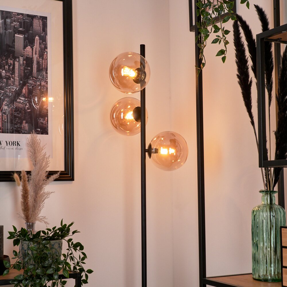 Remaisnil Staande lamp - Glas Zwart, 3-lichts