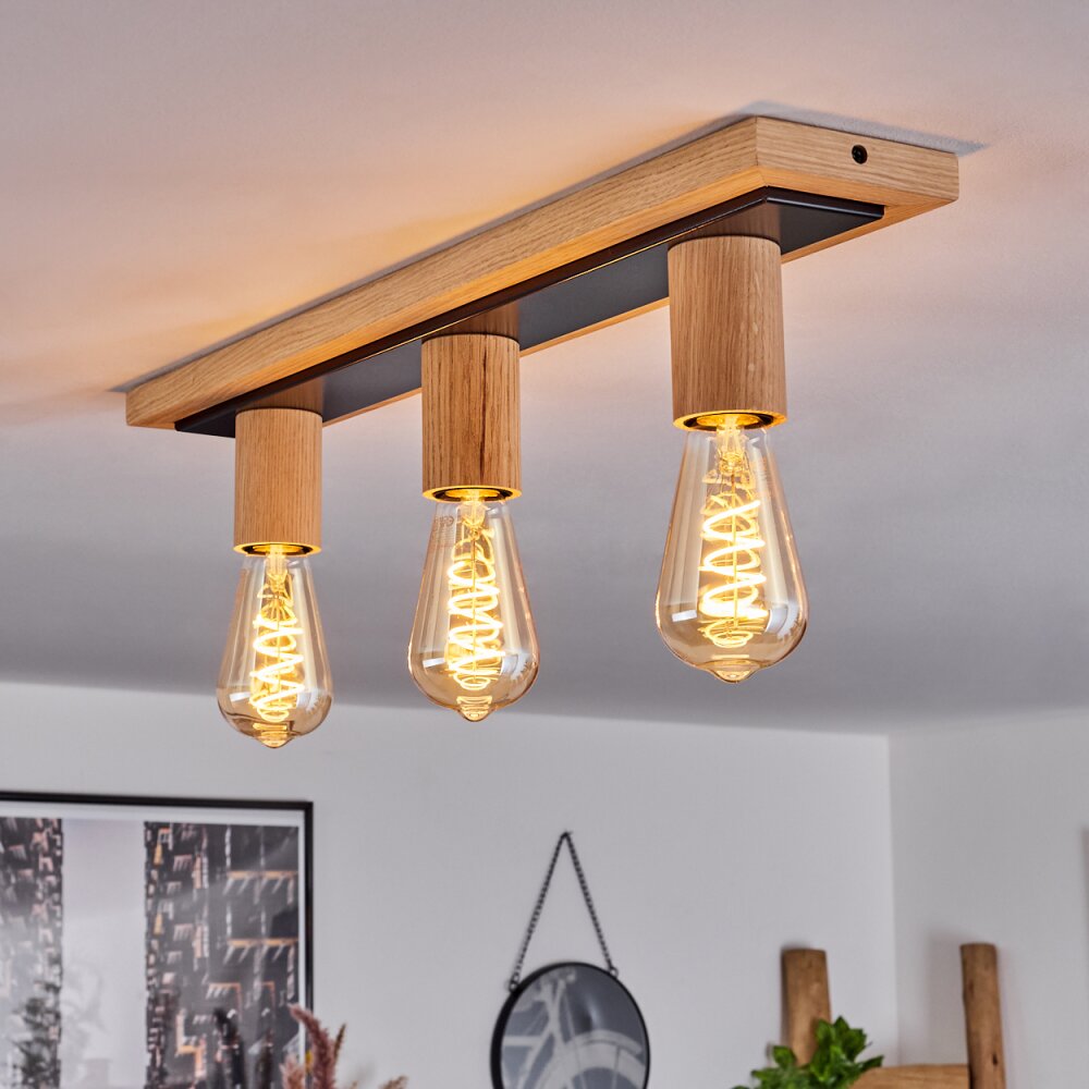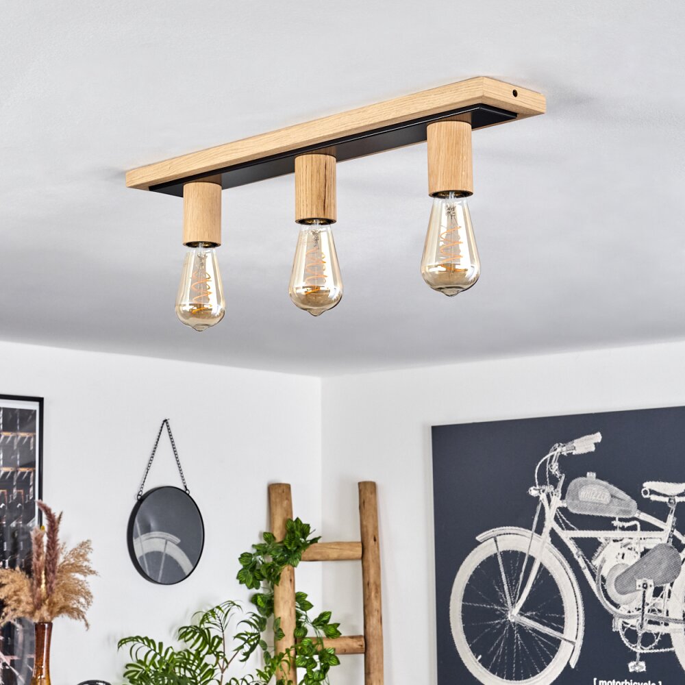 Ellekilde Plafondlamp LED Bruin, houtlook, Zwart, 1-licht