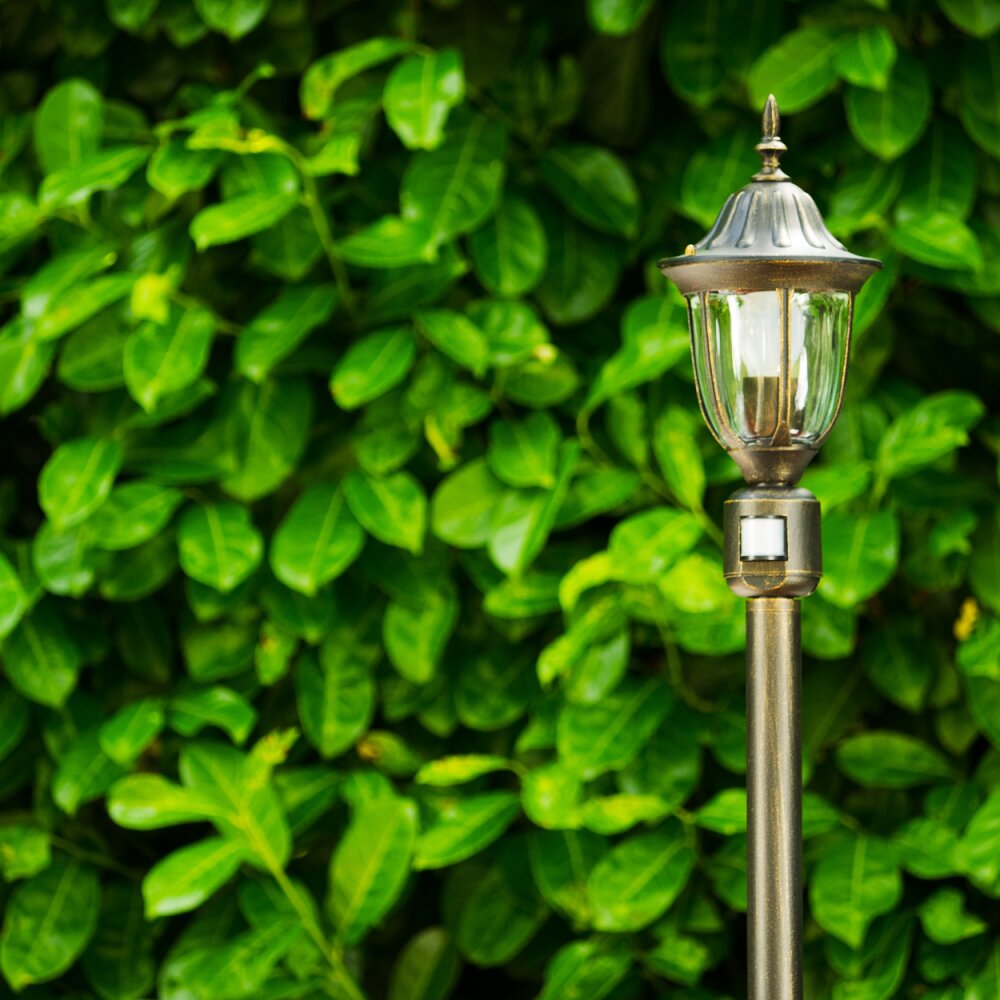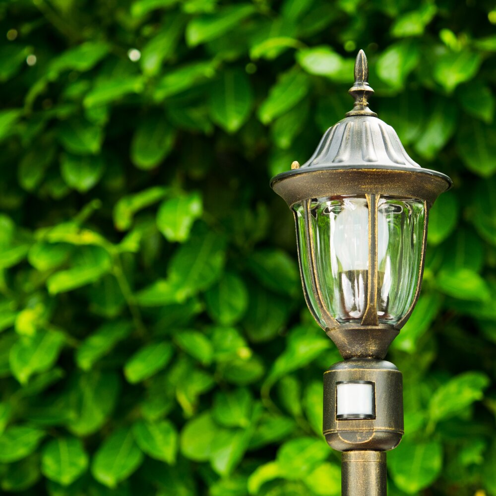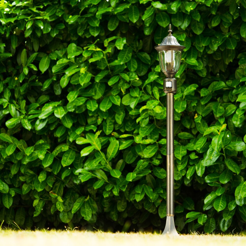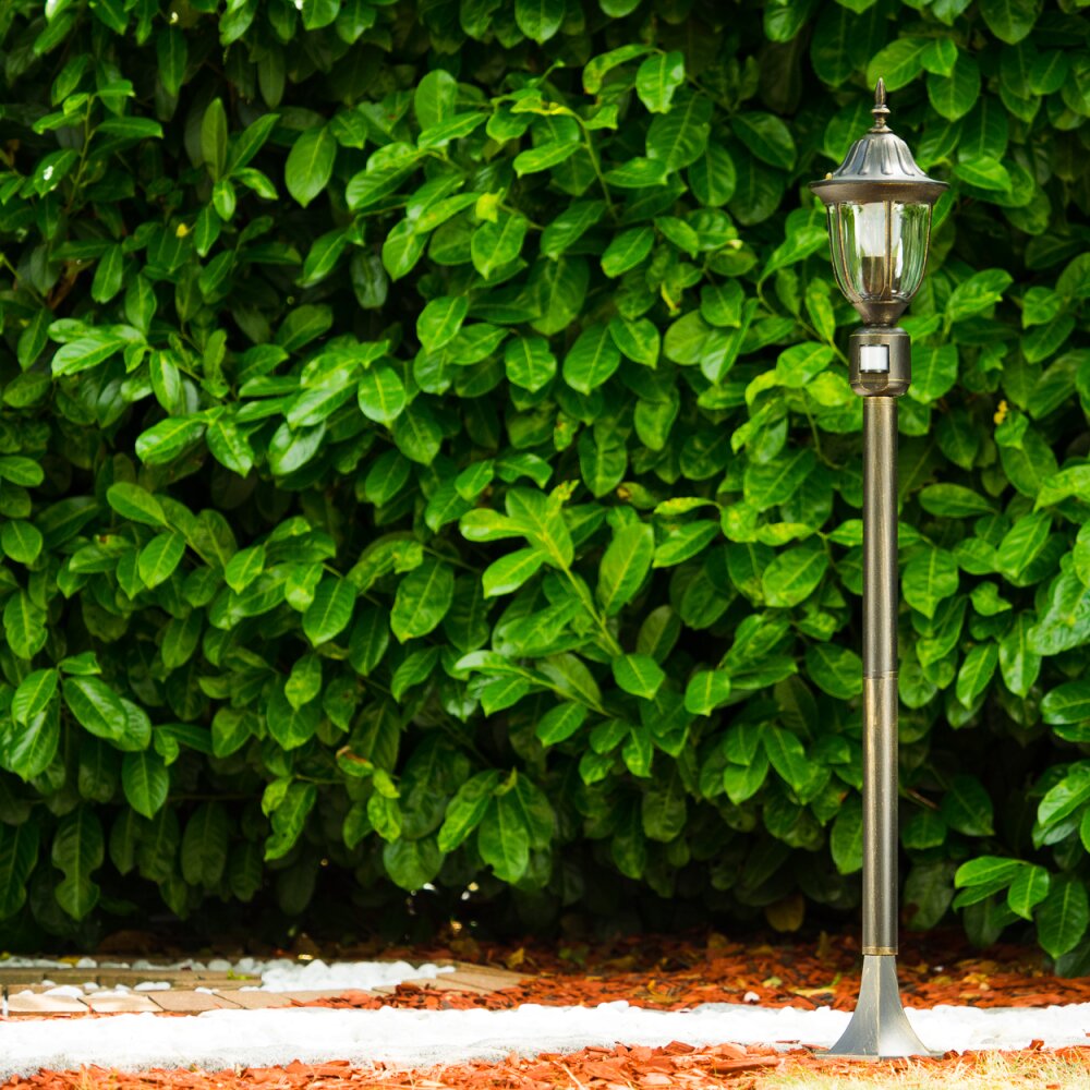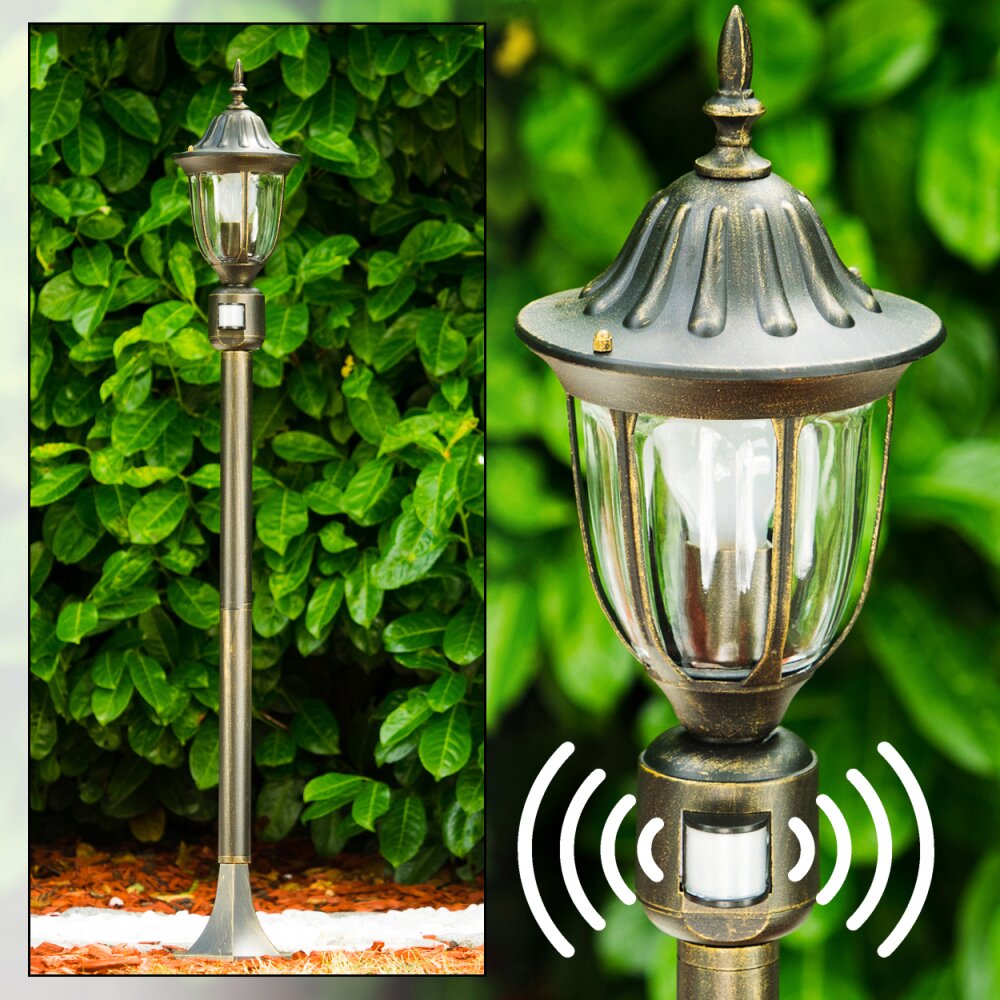 Ribadeo Padverlichting Zwart-Goud, 1-licht, Bewegingsmelder