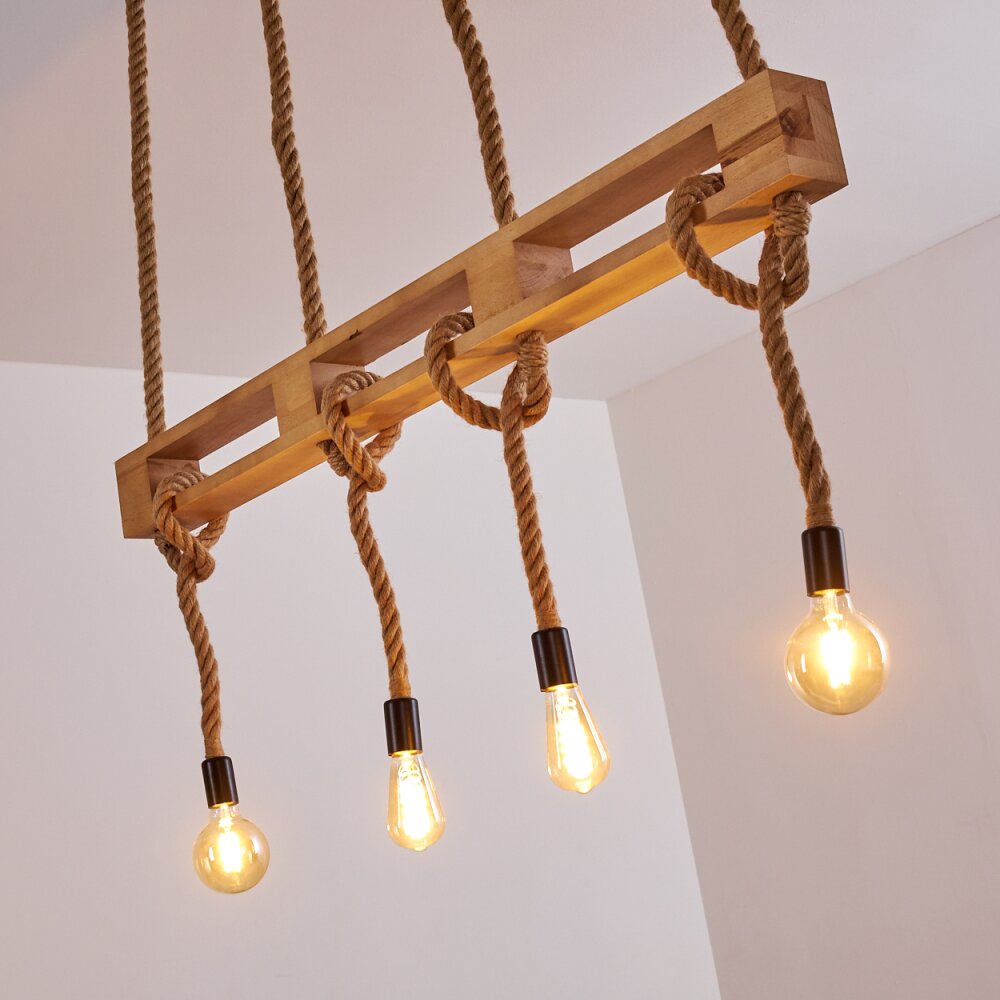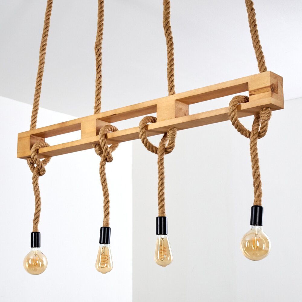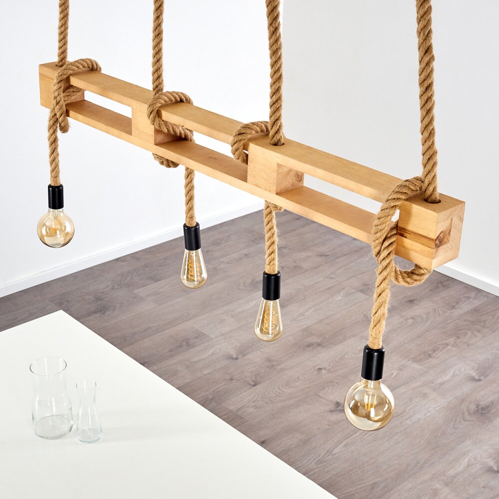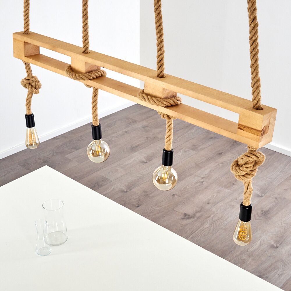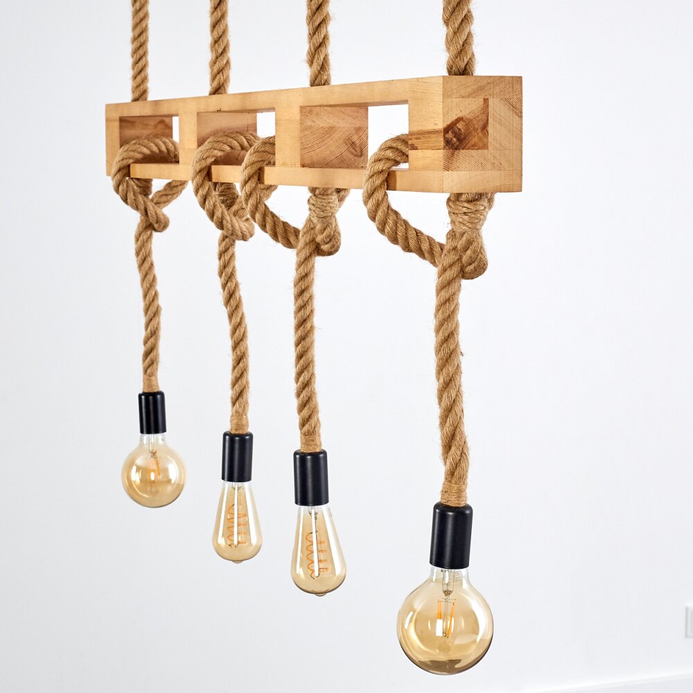 Riekje Hanglamp Bruin, Hout licht, Zwart, 4-lichts