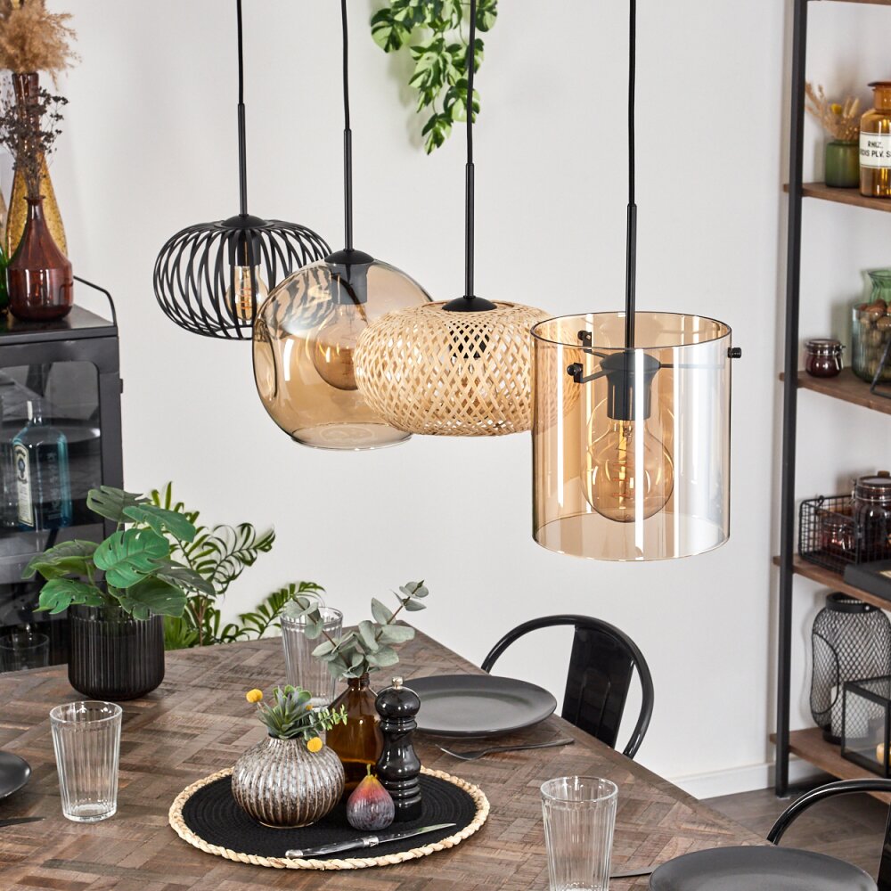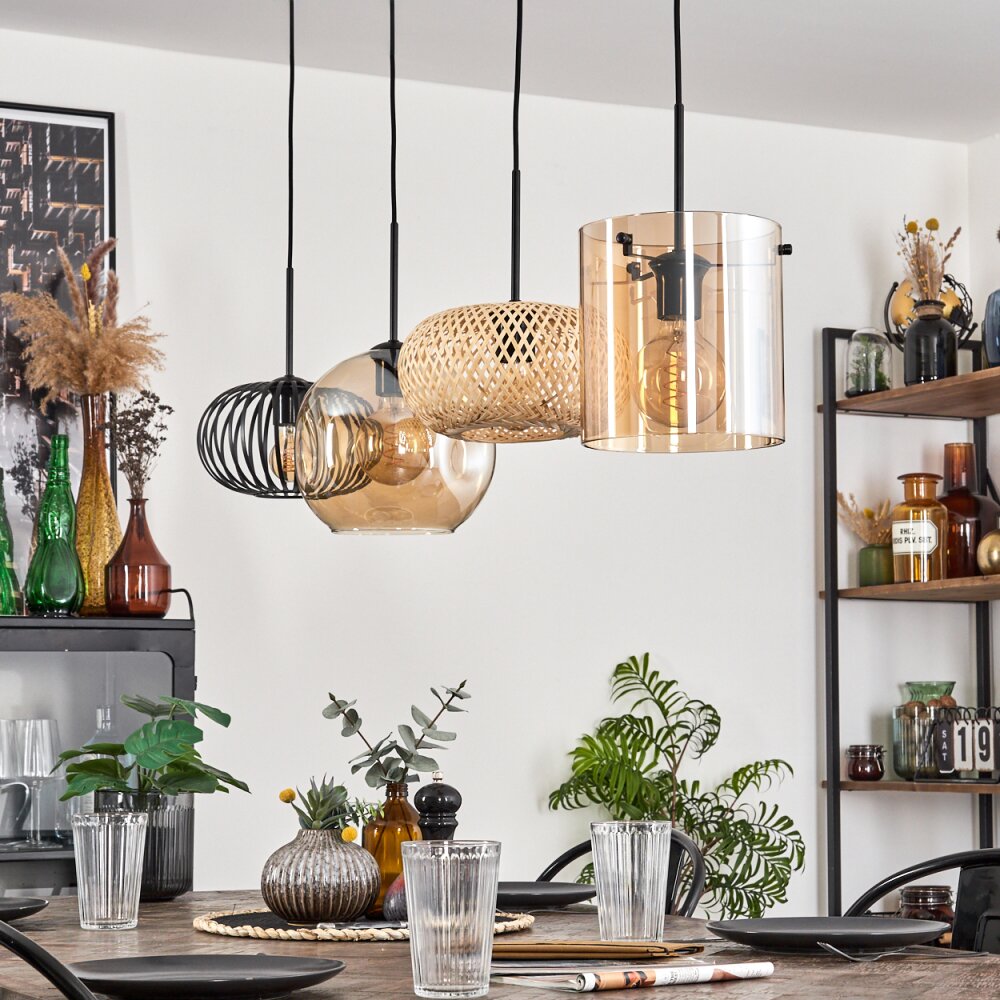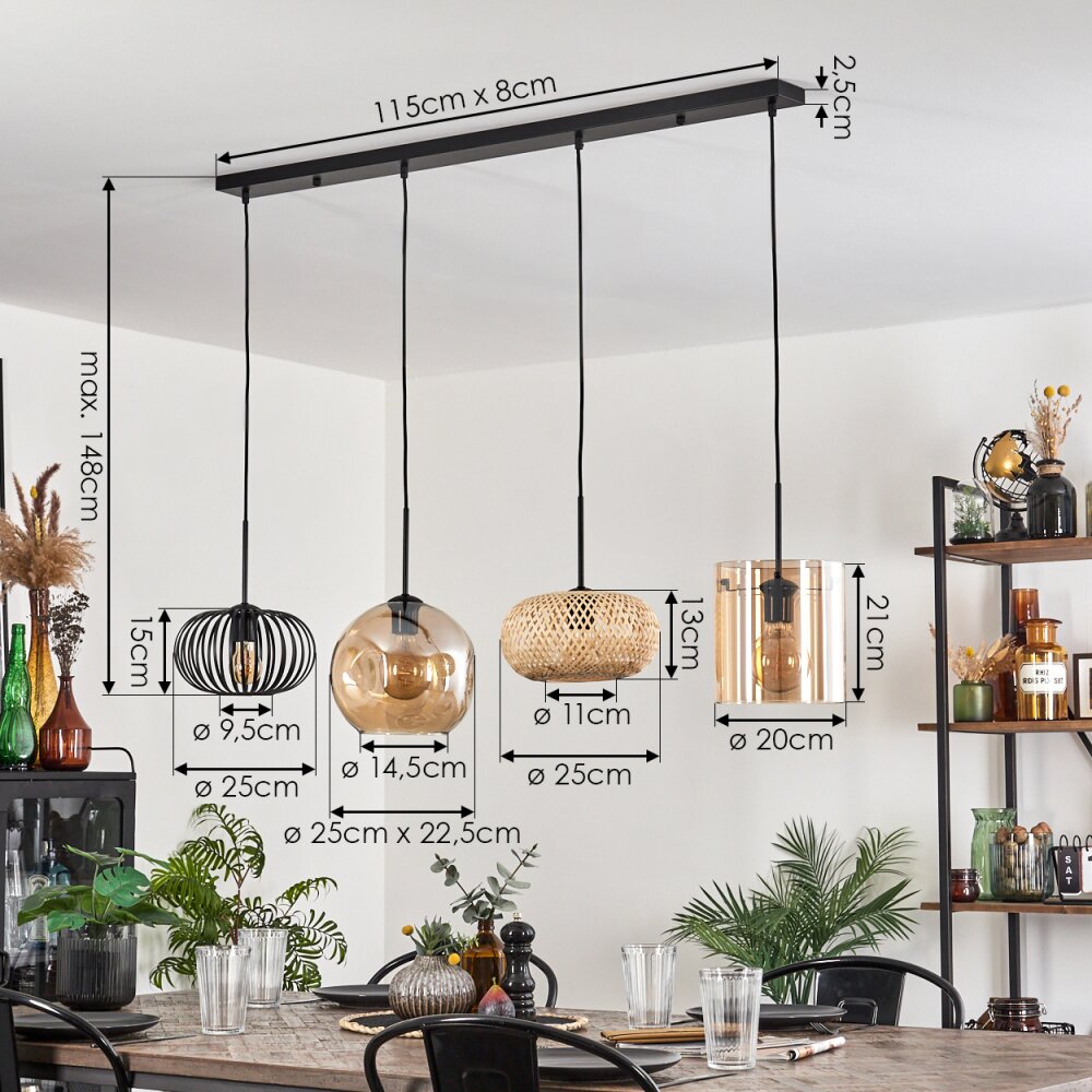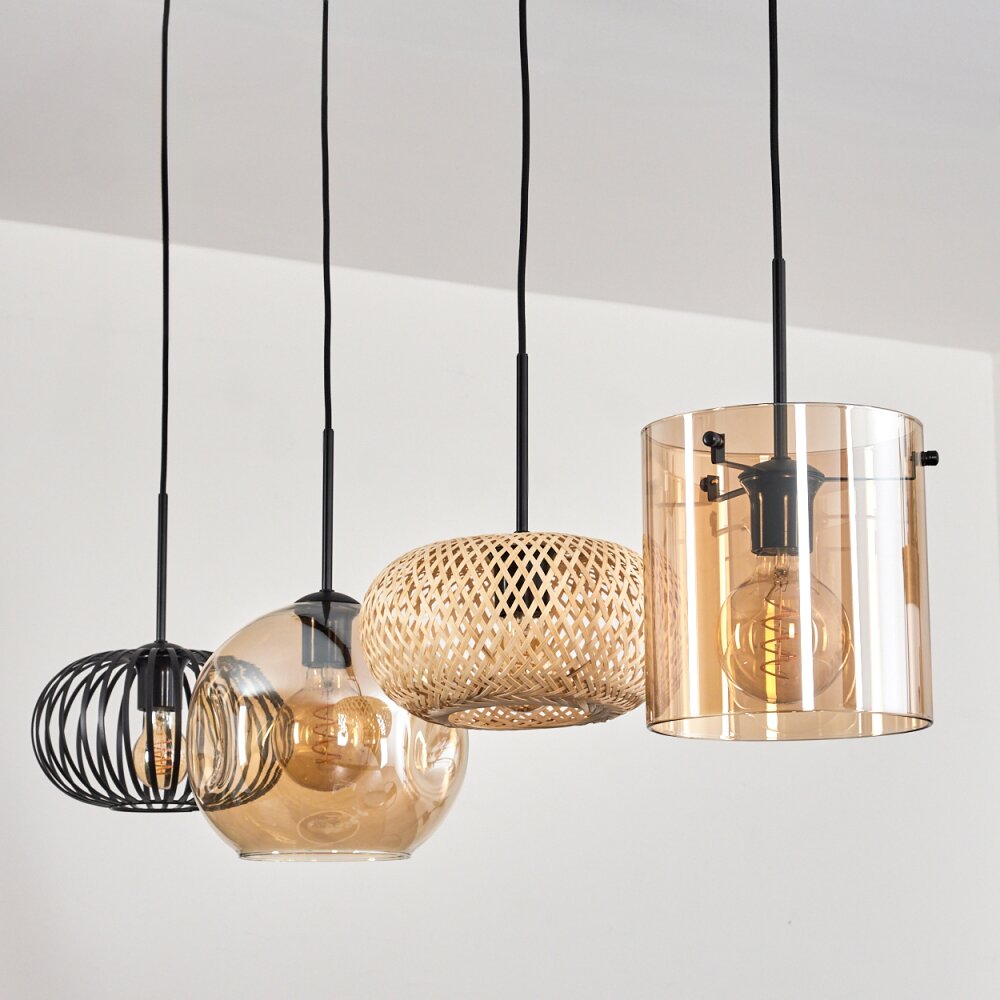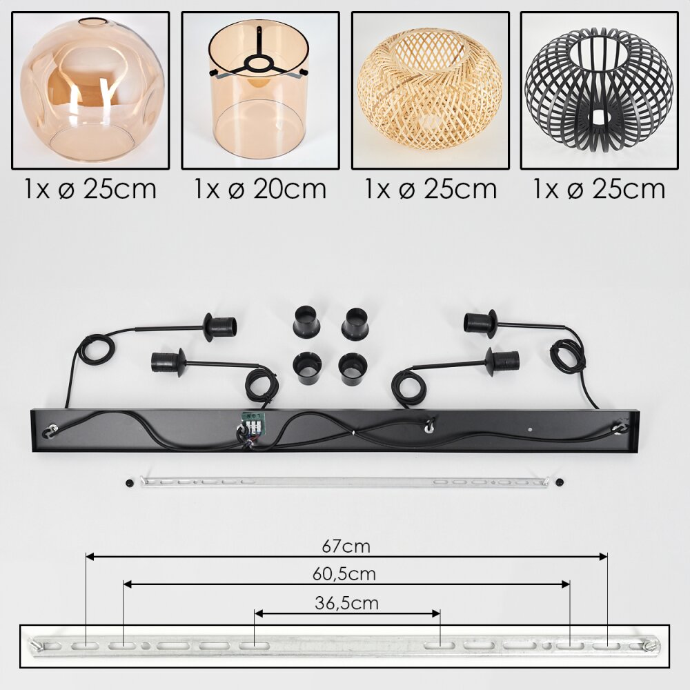 Ripoll Hanger - Glas 25 cm, 20cm Amber, Natuurlijke kleuren, Zwart, 4-lichts